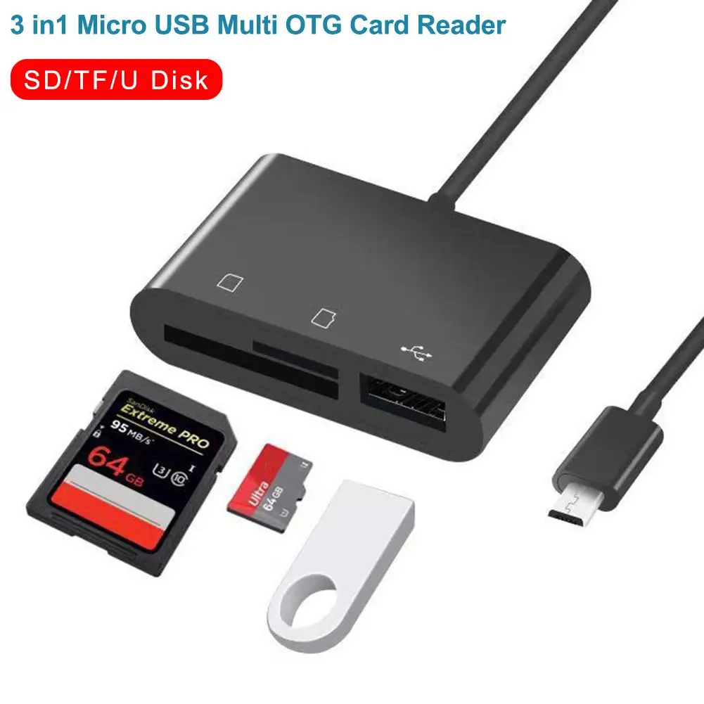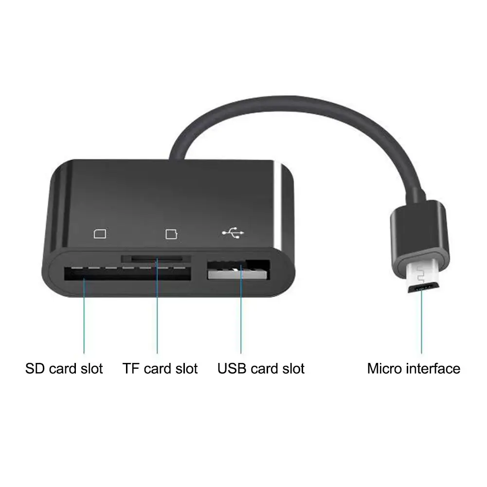 3 in 1 Multi Micro USB 2.0 OTG Host Adapter Cable TF SD Memory Card Reader Hub for Smartphones PC Laptop Computer