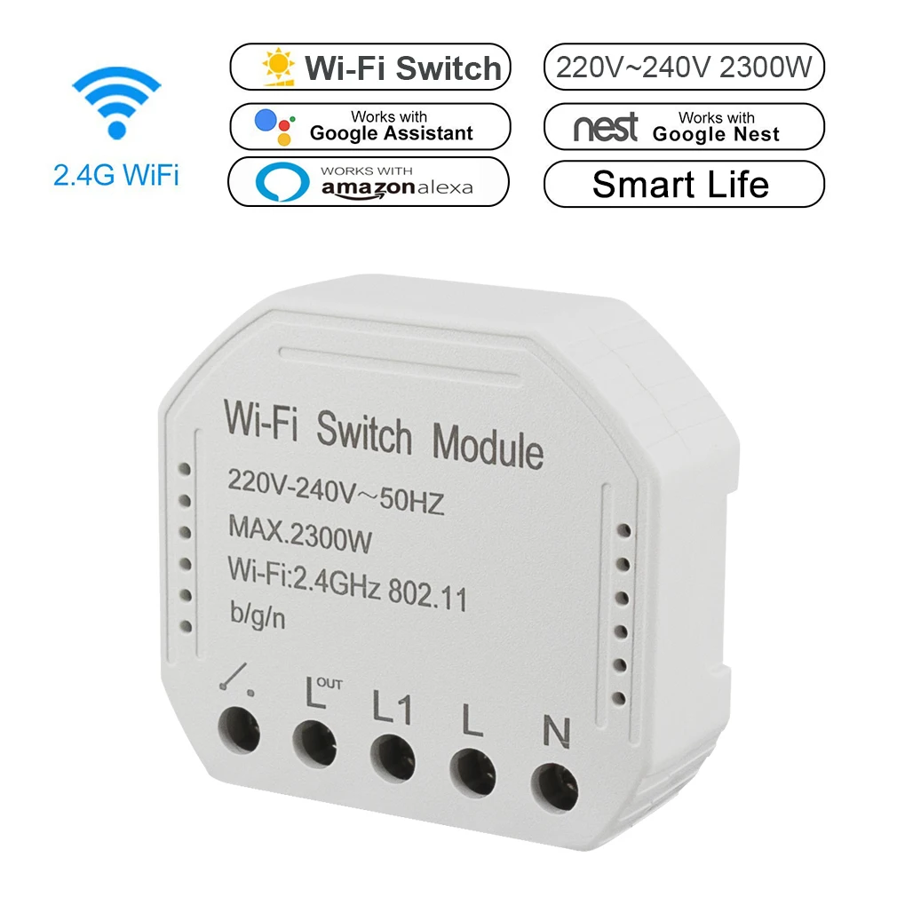 Модуль Wi-Fi switch предназначен для преобразования традиционного переключателя в смарт-коммутатор Wi-Fi, который позволяет подключенному устройству управлять через смартфон, а также традиционный переключатель. Мини-дизайн: интеллектуальный модуль переключателя подходит для электронного продукта мощностью менее 2300 Вт (потолочный светильник, лампа, настольная лампа, садовый светильник. Вентилятор, кондиционер, кофемашина и т. д. ..) Основные функции: дистанционное управление смартфоном, переключатель времени, голосовое управление... Сделать жизнь проще Умный светильник Wifi помогает переключать светильник s во время установки, управление приложением смартфона и Голосовое управление, чтобы сделать жизнь проще и удобнее. Не нужно вставать в холодную зиму, чтобы включить светильник. Светильник с голосовым управлением Модуль Smart-светильник поддерживает функцию таймера, а выключатель питания может управляться дистанционно (wifi)! Голосовое управление/Управление смартфоном, удобное и простое в эксплуатации. Управляйте устройствами из любой точки мира. -Перед тем как отправиться домой, вы можете открыть кондиционер в гостиной, открыть теплый светильник в спальне, готовый принять ванну с горячей водой, чтобы устранить усталость дня. -Если вы хотите пойти в ванную или пойти в другие комнаты после того, как Вы выключите свет, вы можете использовать приложение «smart life», чтобы открыть свет заранее, никогда не будет никаких опасений или несчастных случаев, это особенно важно для пожилых людей, детей и людей с ограниченными возможностями. -Включите светильник или кофеварка, прежде чем выйти из кровати, Сделайте вашу жизнь более легкой. Набор графиков Используйте Smart Switch для автоматизации подключенных светильников на основе вашего ежедневного расписания и предпочтений. Умный переключатель может даже автоматически регулировать время заката и восхода солнца. Голосовое управление Совместимо с Amazon Alexa Echo и Google Home