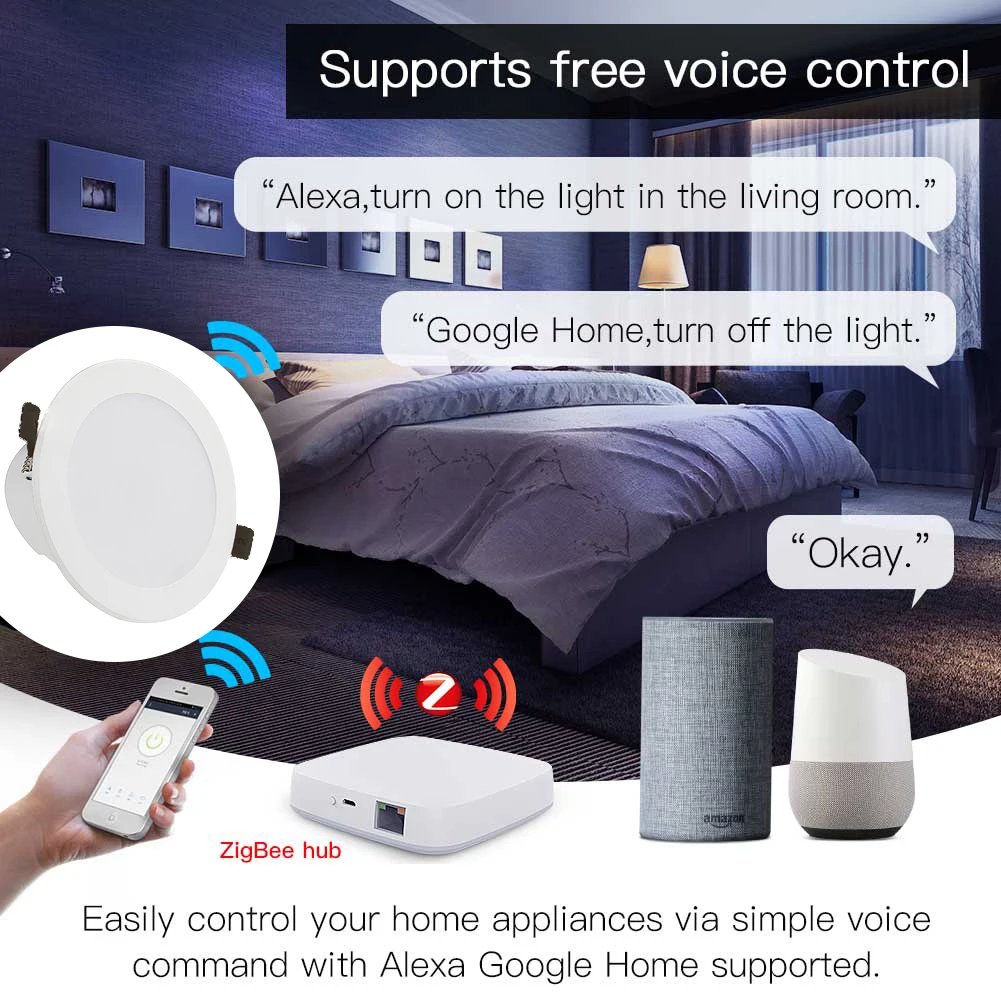 Умный светодиодный светильник совместим с Amazon Alexa ,Google Home и SmartThings. Просто выполните голосовую команду, чтобы включить/выключить свет или даже переключить свет на определенный цвет, который вам нравится. И легко устанавливается. Внимание: умный светодиодный светильник Zigbee поддерживает только Zigbee.
