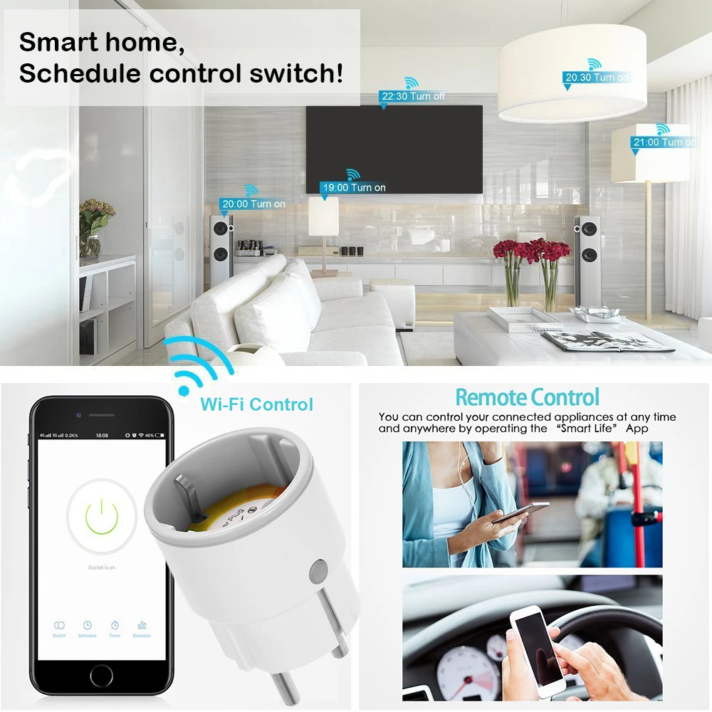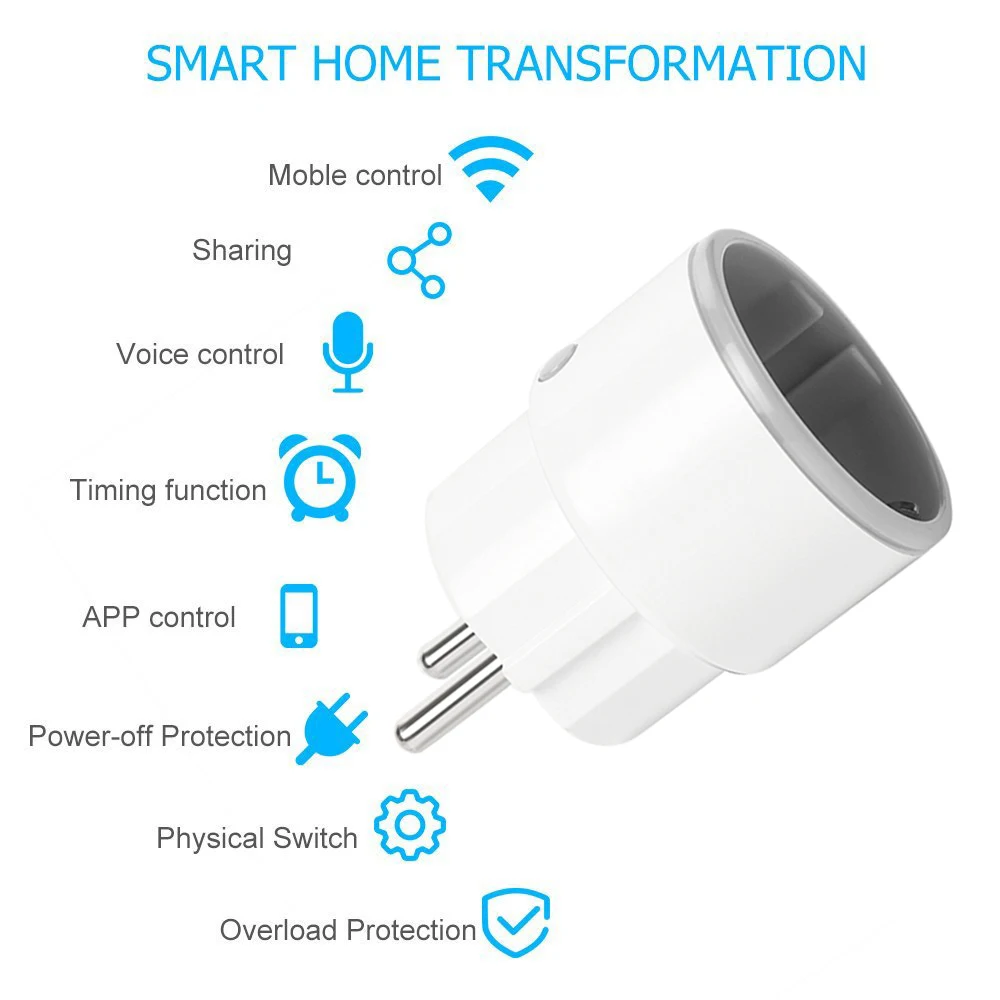 Умная ШТЕПСЕЛЬНАЯ Розетка Wifi, пульт дистанционного управления со смартфона, программируемая розетка домашней автоматизации с функцией таймера, не требуется концентратор, розетка питания контролирует ваши устройства из любого места. Голосовое управление Совместимо с Amazon Alexa Echo и Google Assistant/Google Home (штепсельная вилка европейского стандарта)