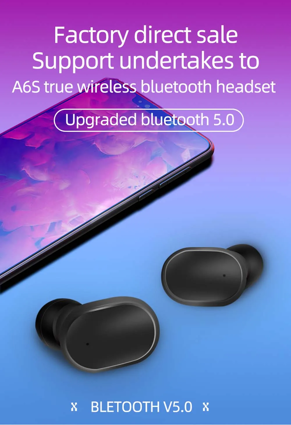 A6S 5,0 TWS Bluetooth наушники VS Redmi Airdots беспроводные наушники стерео гарнитура Мини наушники для iPhone Xiaomi Huawei Samsung