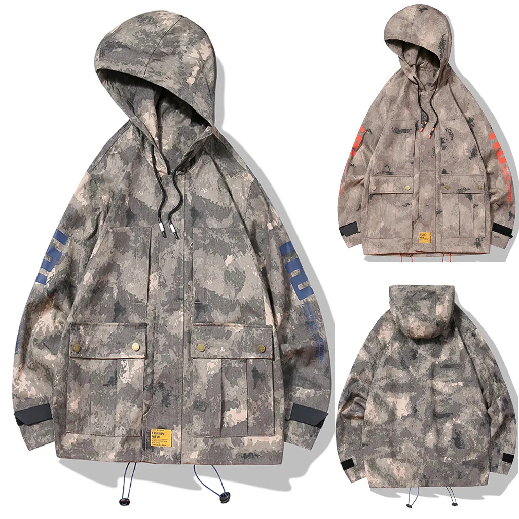 Мужская Осенняя Повседневная мода камуфляжное худи на молнии плюс размер куртка пальто