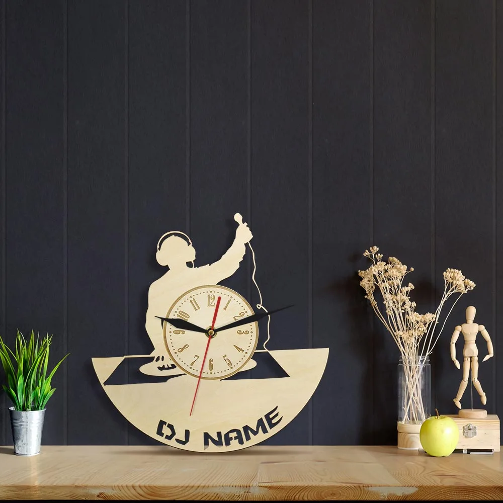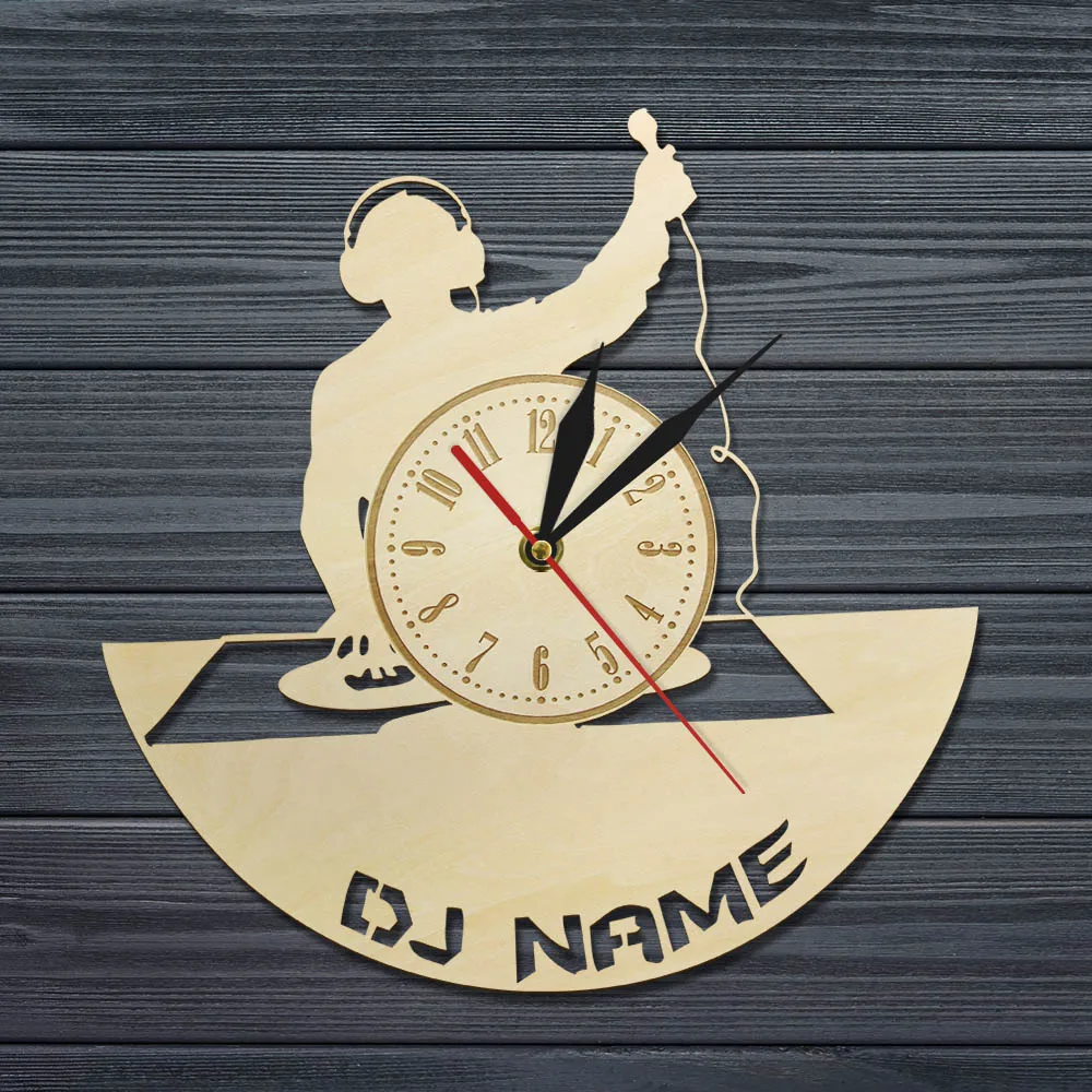 DJ Name Here Wooden Clock