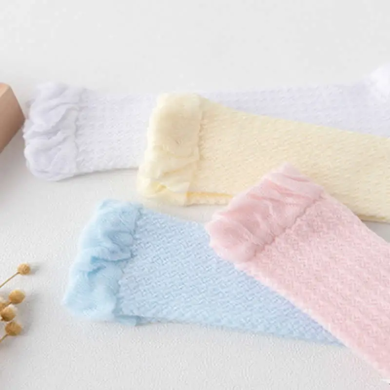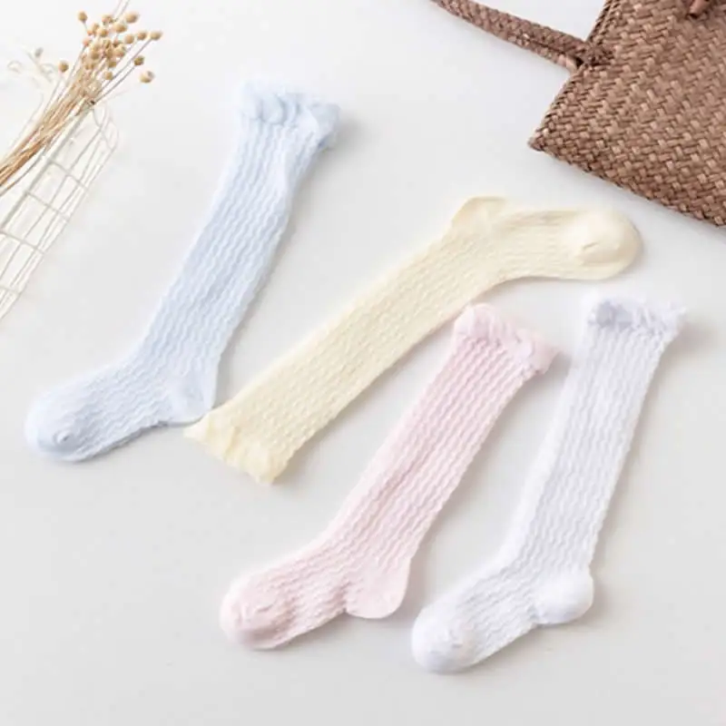 Мягкие милые детские гольфы, хлопковые сетчатые дышащие мягкие носки для новорожденных, Нескользящие длинные носки, костюм для детей 0-4 лет