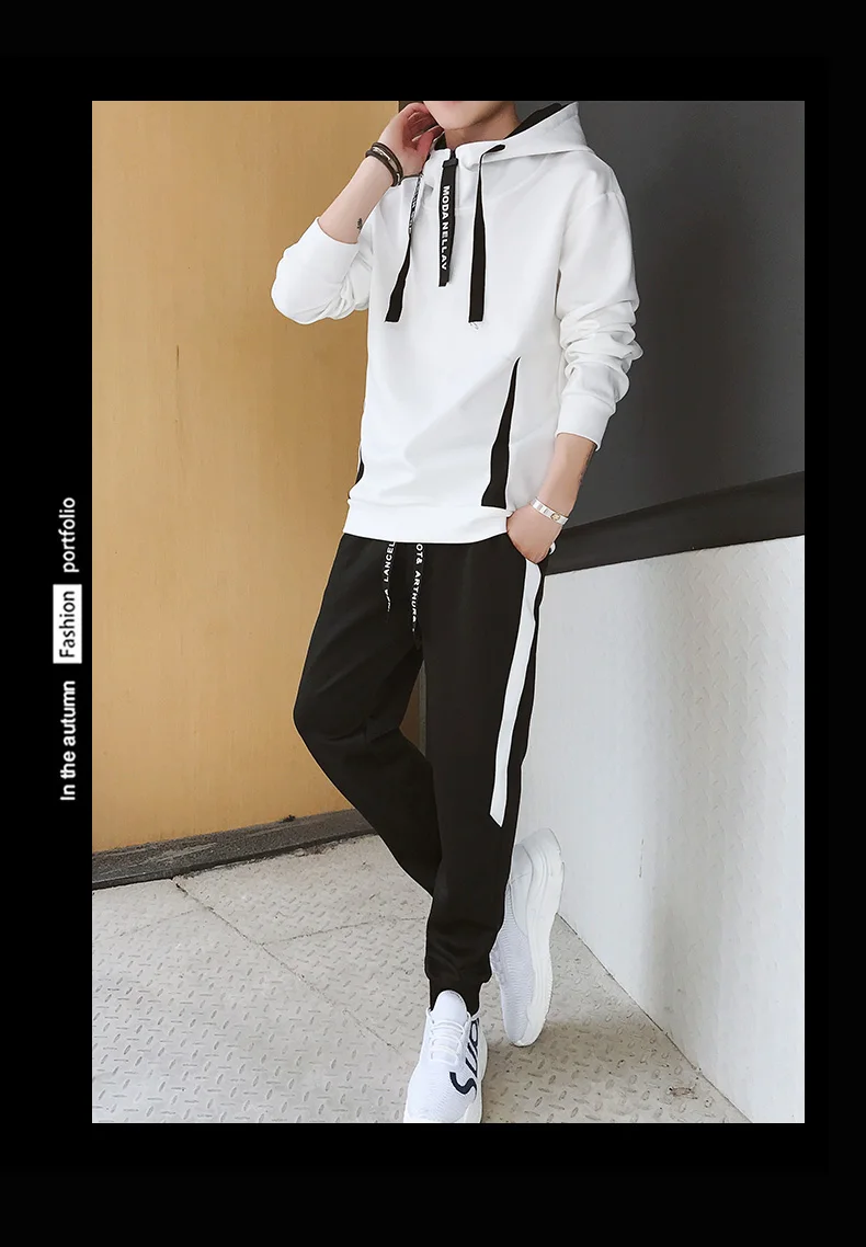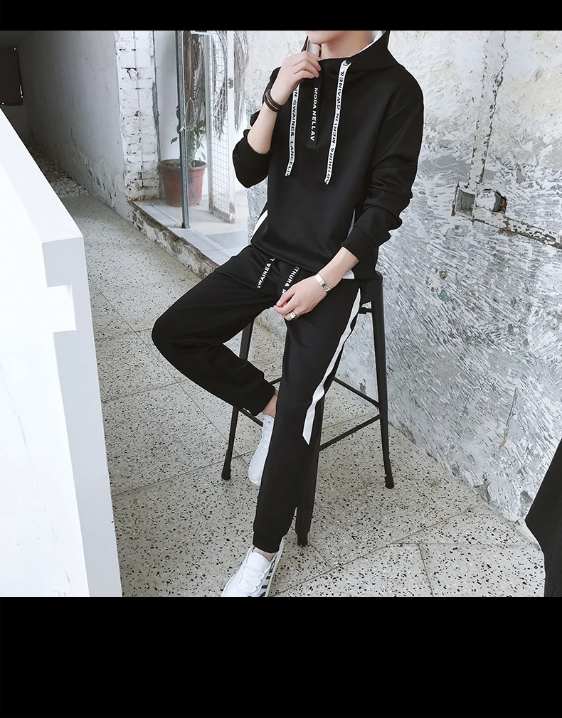 2019 мужской осенний свитер с капюшоном повседневный костюм Корейская версия тренда молодежной спортивной одежды из двух частей мужчин