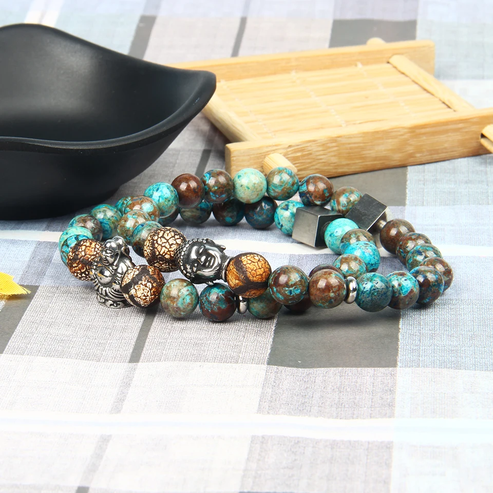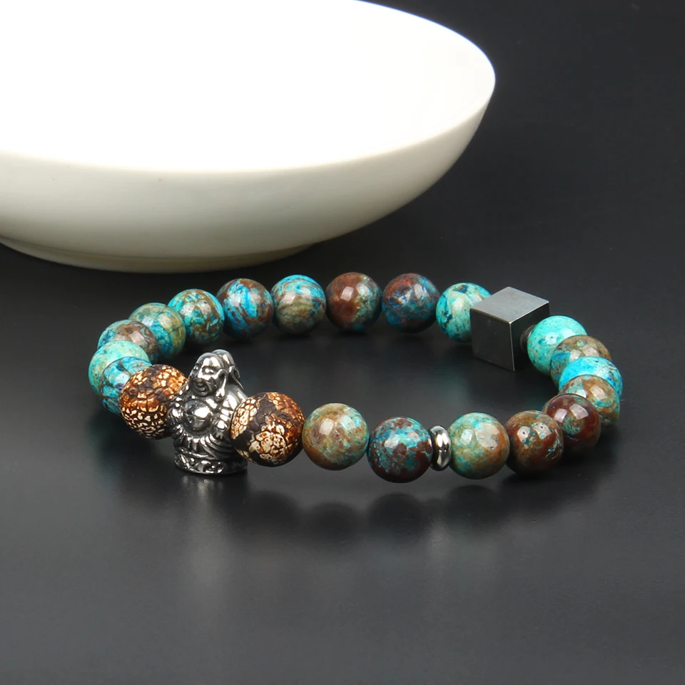 Bracelet Material:Nature Stone beads with Stainless steel Buddha and logo beads