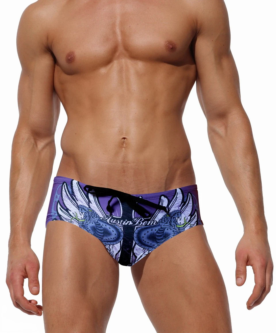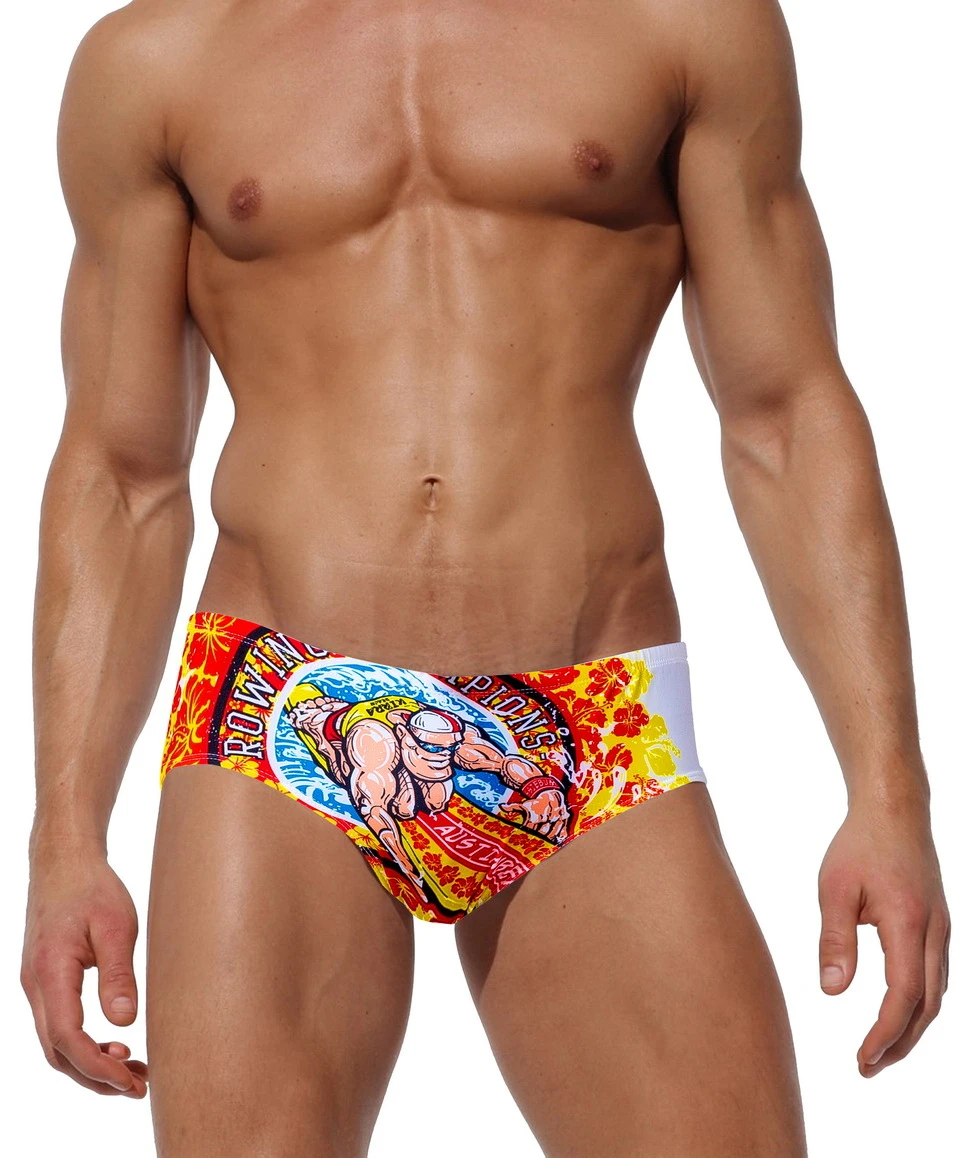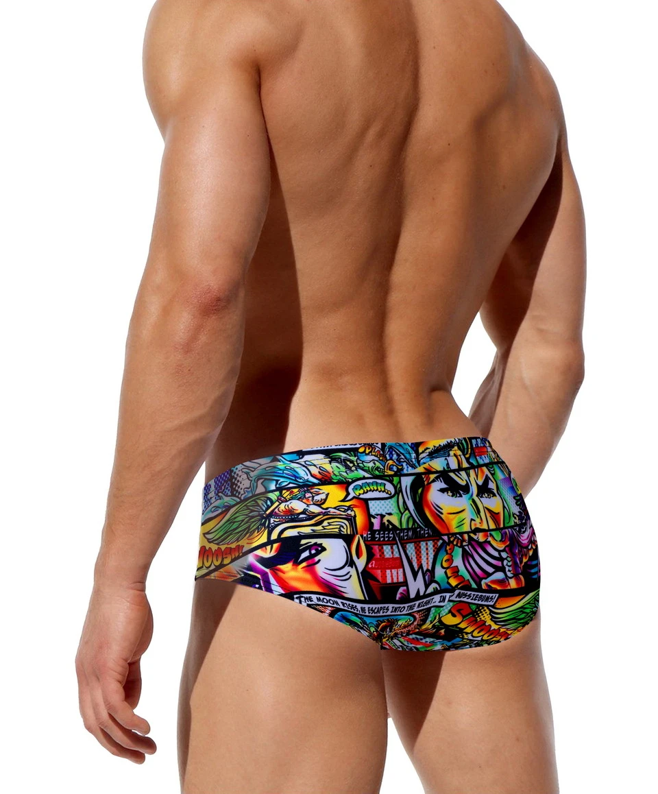 Мужской купальный костюм с рисунком из мультфильма, эластичная одежда для плавания, дышащие быстросохнущие плавки для плавания, облегающие сексуальные плавки для плавания, мужские