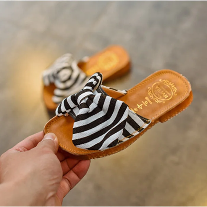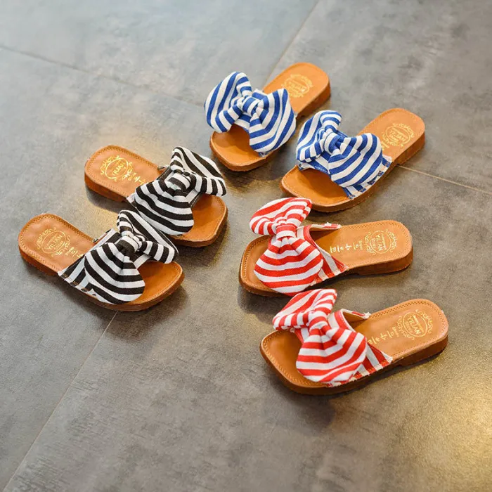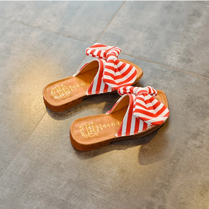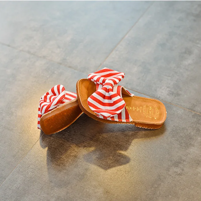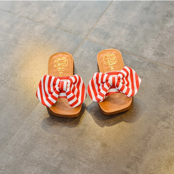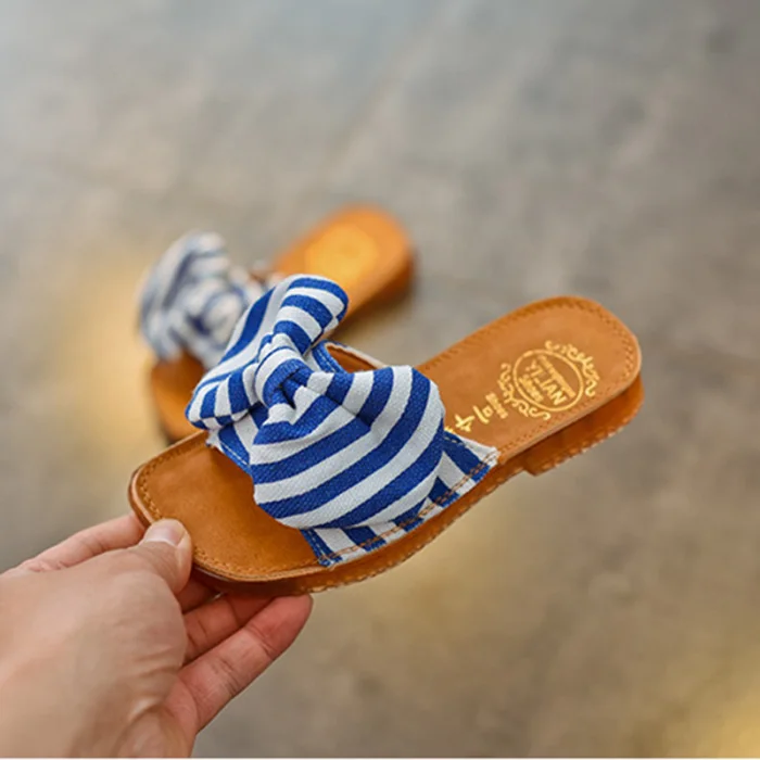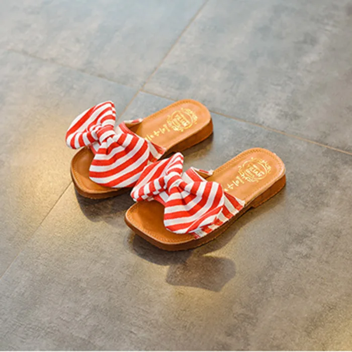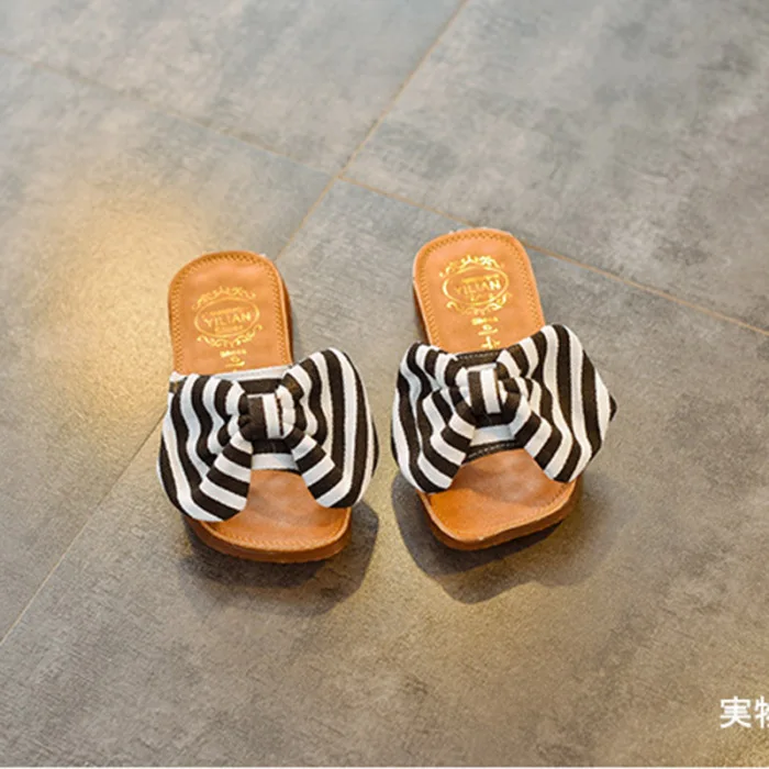 1 пара детских тапочек для девочек; Повседневная летняя обувь принцессы в полоску с бантом; Пляжные тапочки для малышей; Prewalkers-35