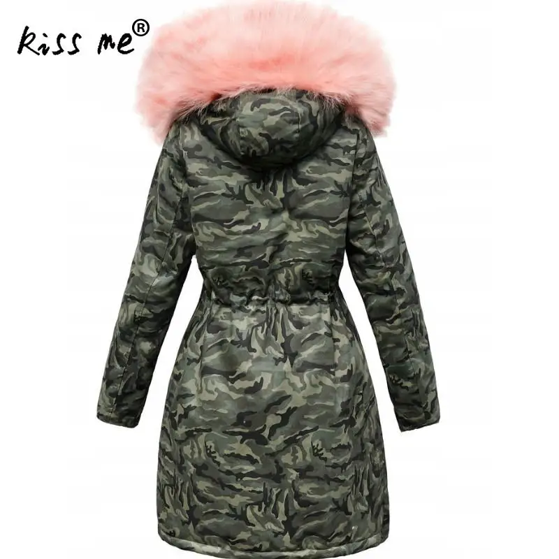 Камуфляжное пальто с капюшоном, зимнее уличное пуховое пальто, женский пуховик средней длины, теплая ветрозащитная походная куртка