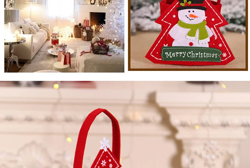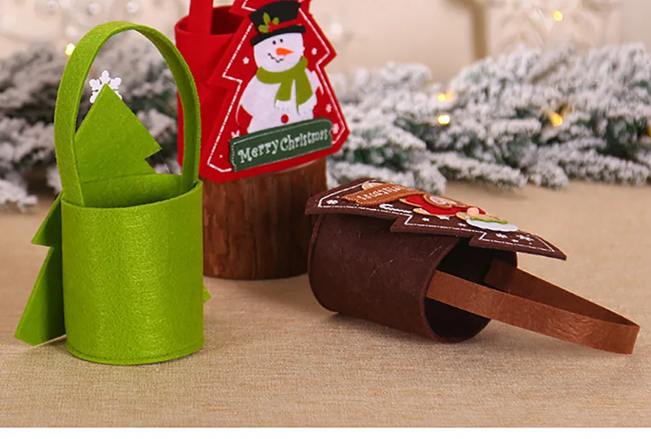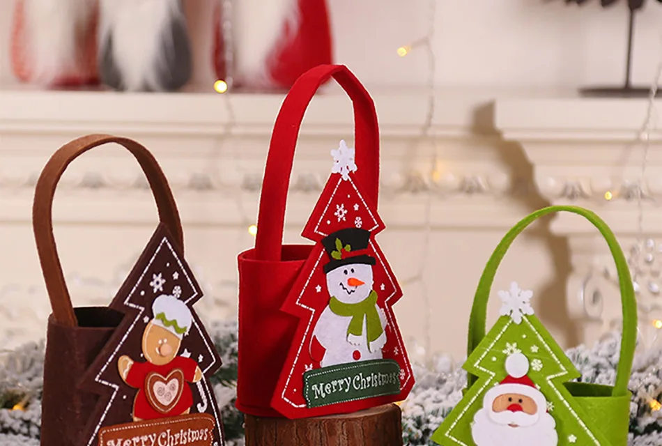 Подарочные сумки из войлочной ткани с изображением Санта-Клауса, снеговика, пряничного человечка, рождественские чулки, Праздничные рождественские вечерние детские сумки-тоут, ZB131