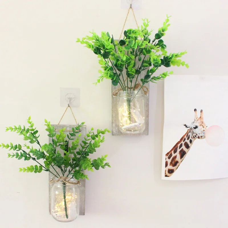 Домашний Ретро декоративный светильник со стеклянной бутылкой деревянная доска поддельный цветок настенный декоративный светильник