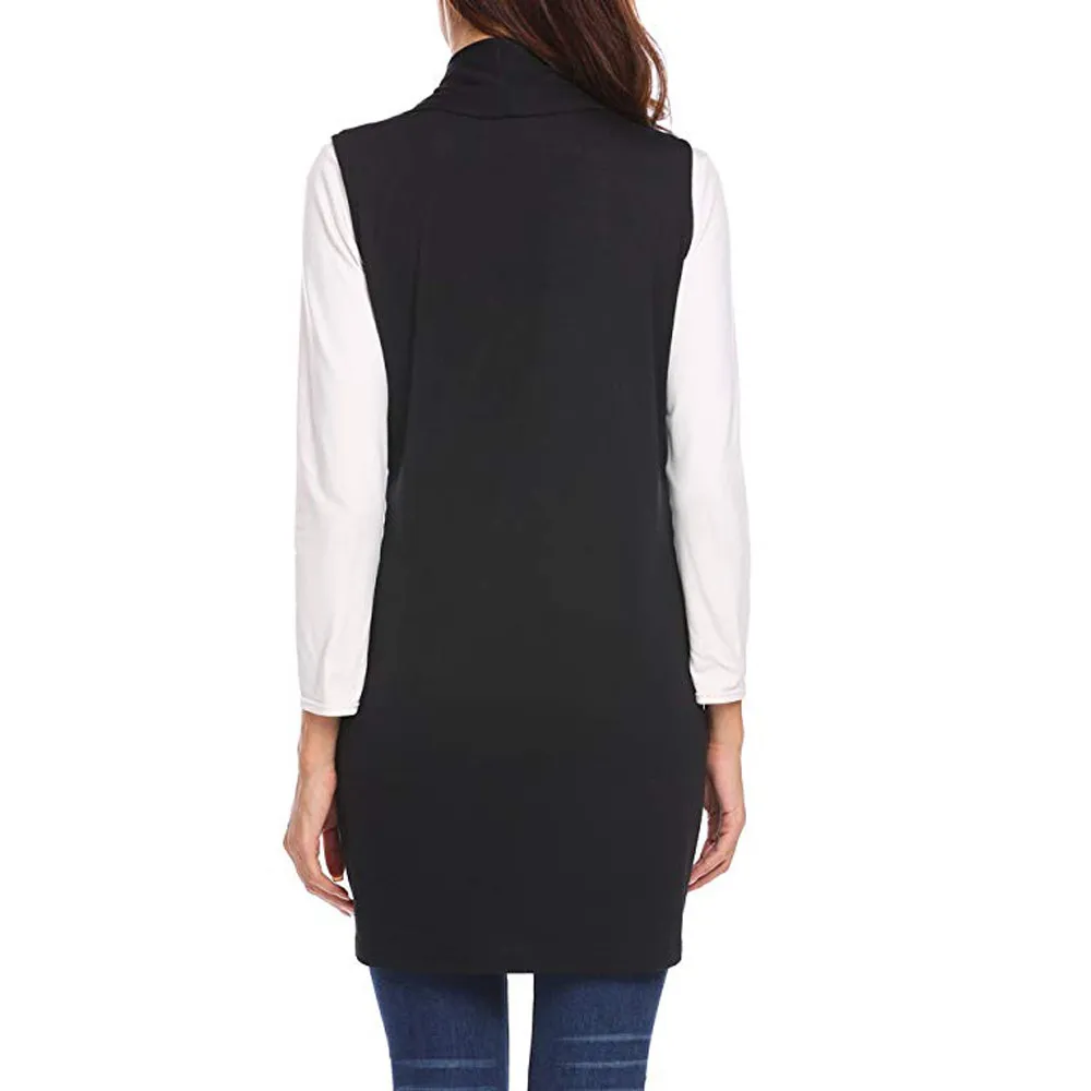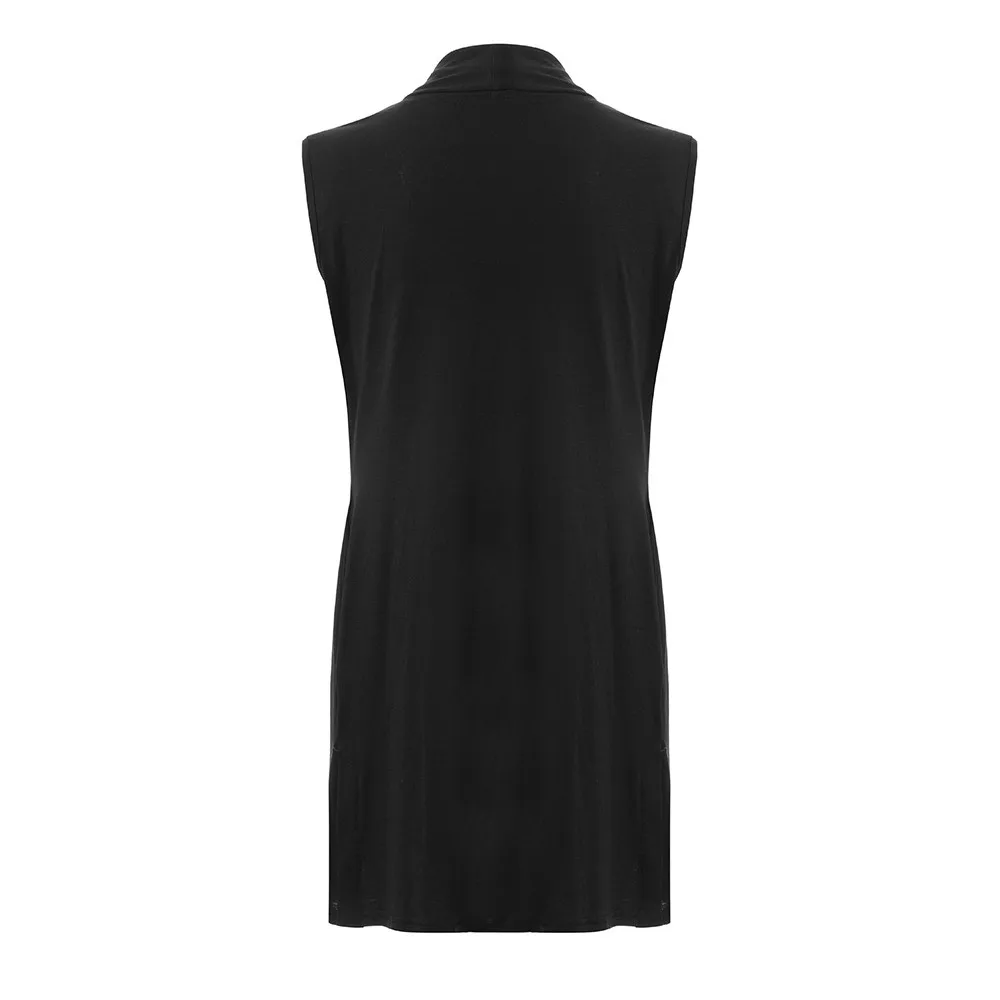 Женская Повседневная накидка без рукавов, шаль, карман, драпировка, открытый передний кардиган, жилет, пальто