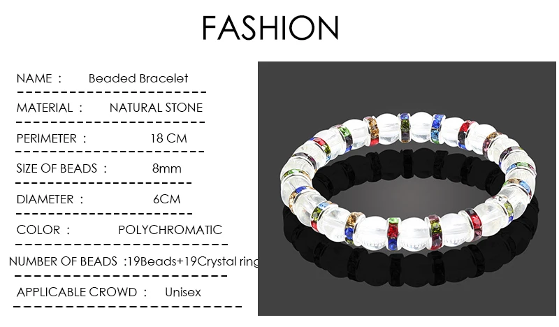 Fashion Charm Natural Stone Women Bracelet Colorful Rhinestone Transparent Beads Bracelets&Bangles Couple Yoga Jewelry pulseras Gifts