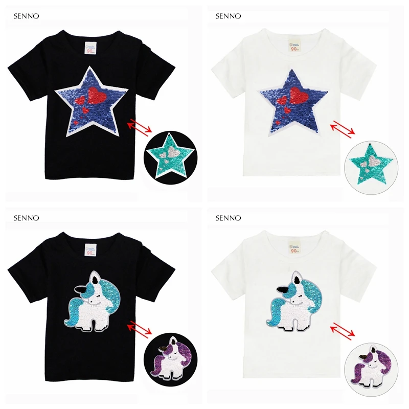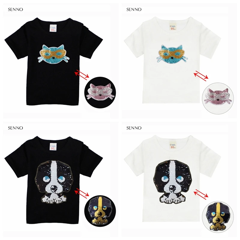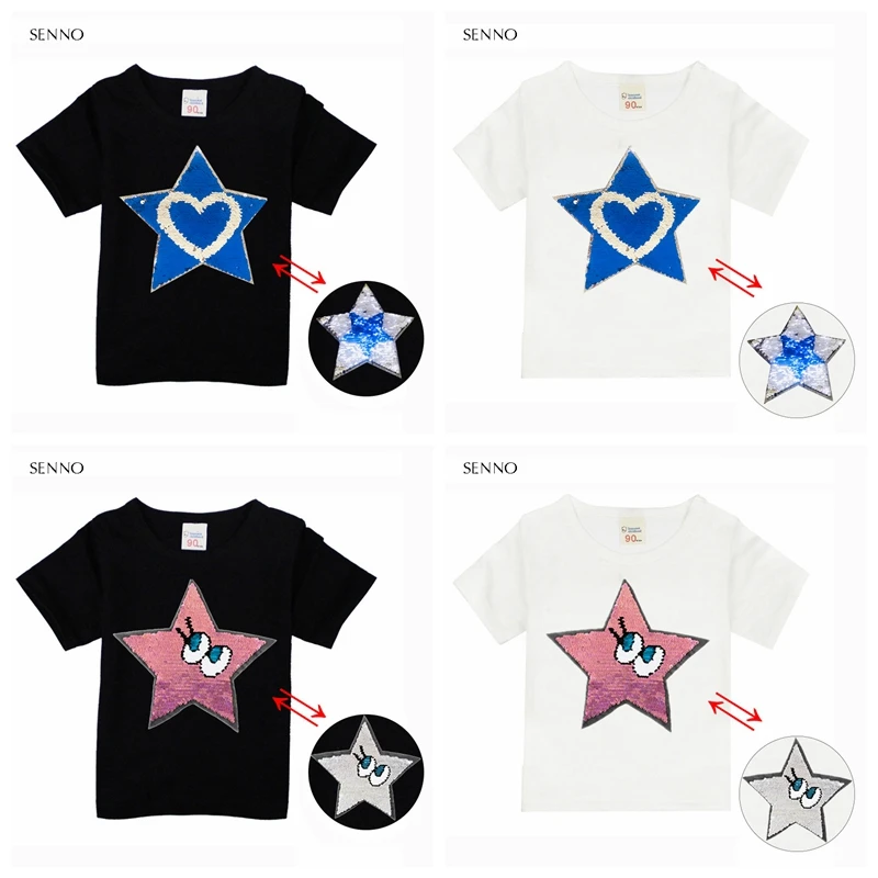Футболка с блестками для маленьких мальчиков и девочек топы, летняя детская футболка для мальчиков и девочек, одежда топы для девочек-подростков, детские футболки с изменяющимися цветами