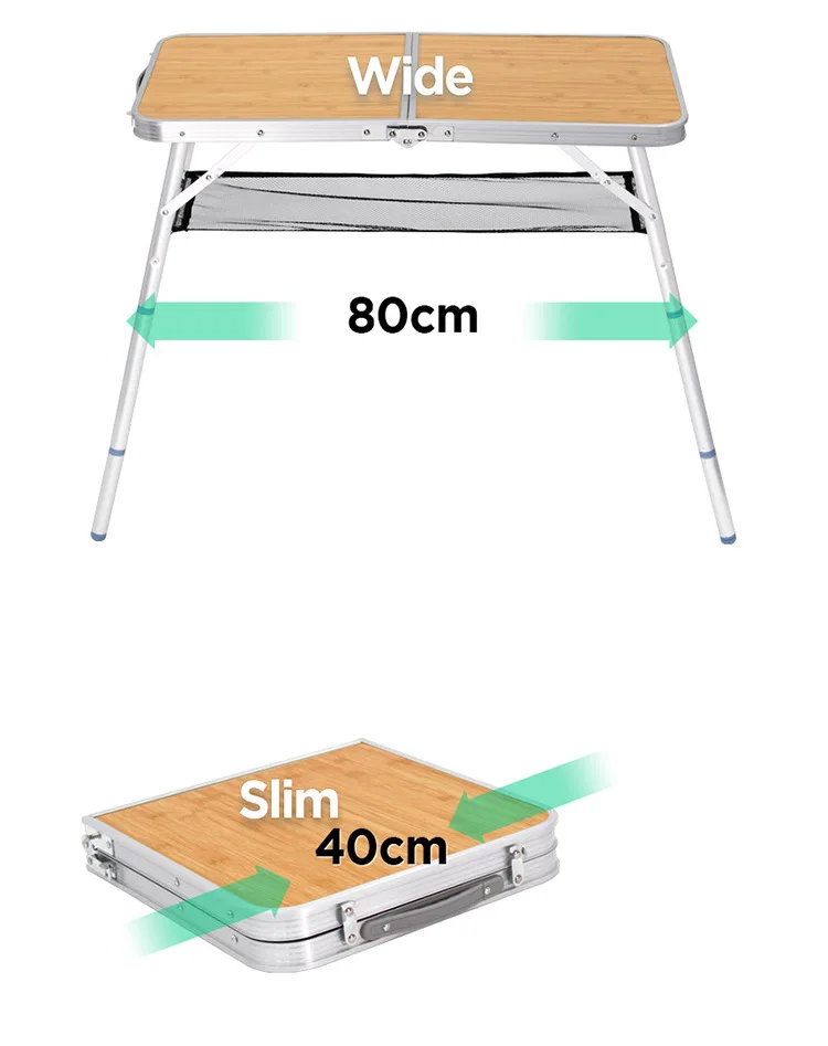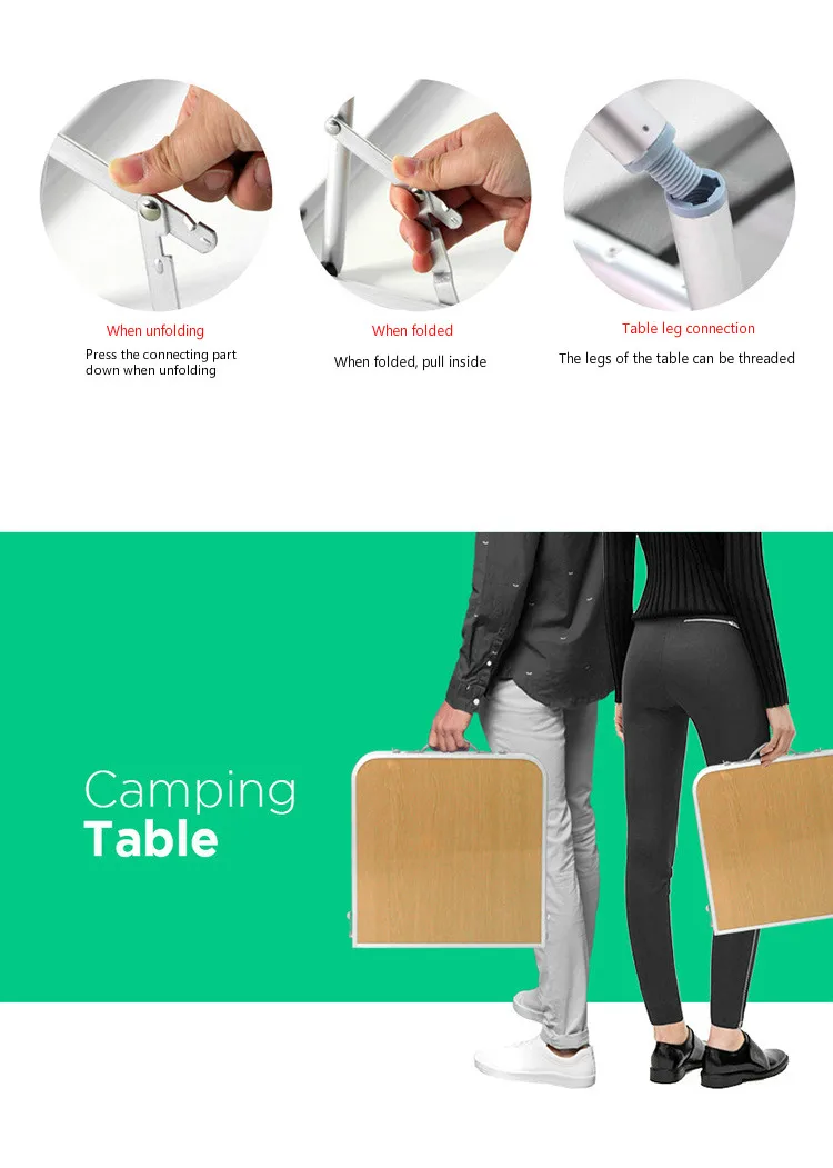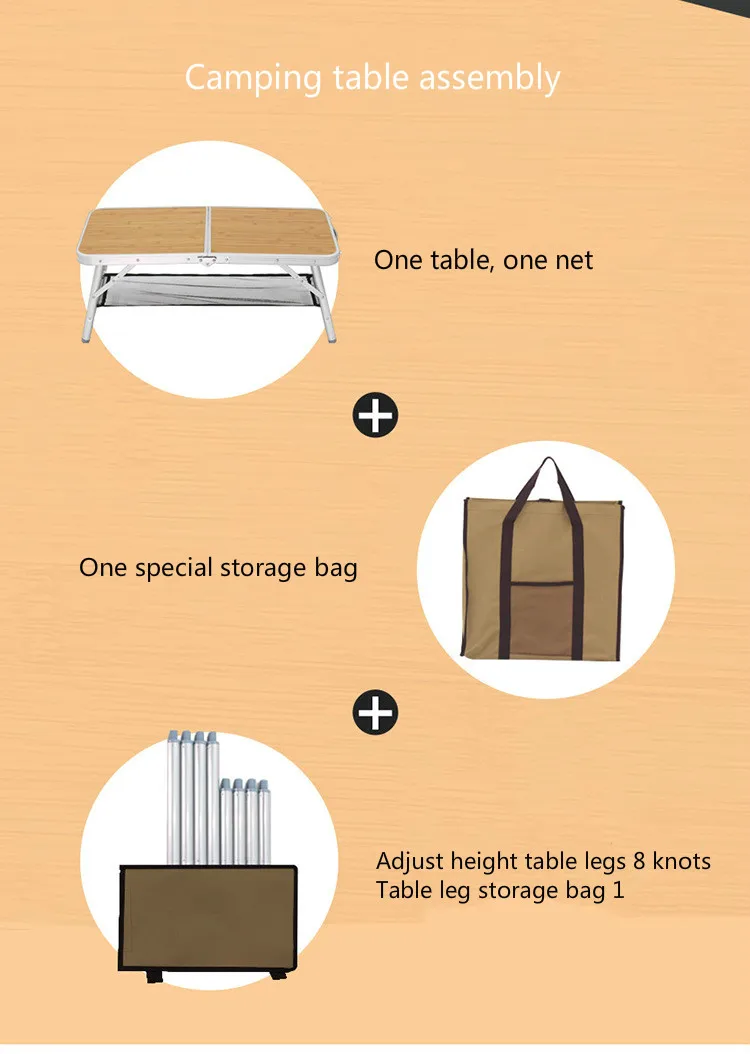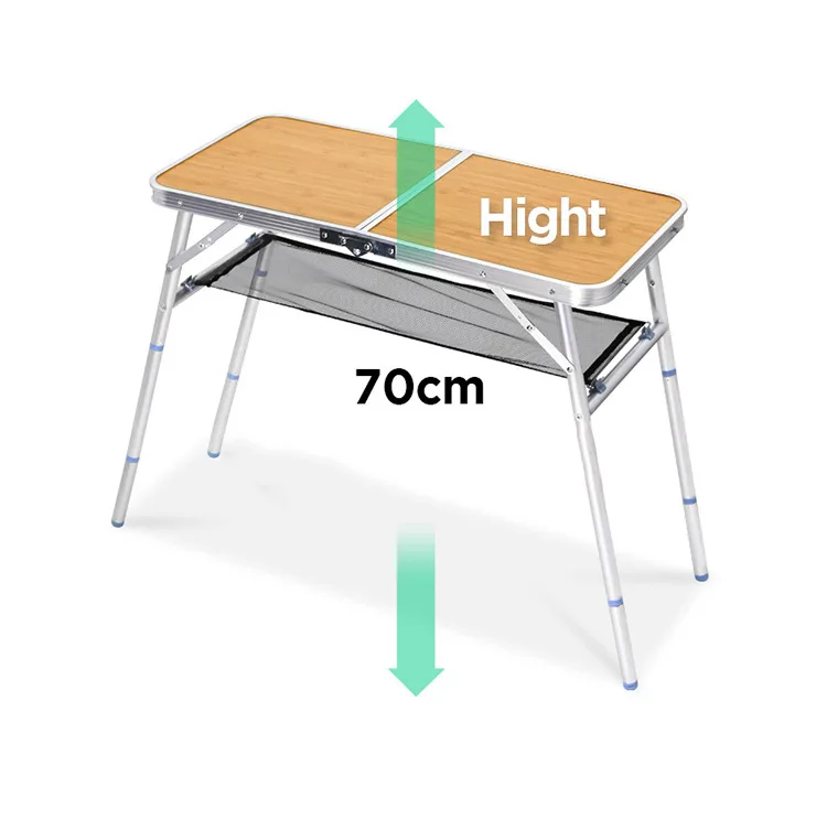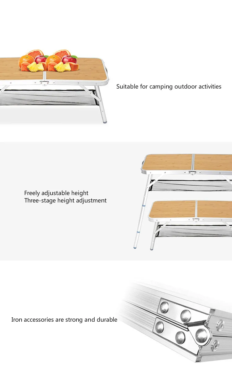 Стол для пикника имеет три высоты, которые можно регулировать и можно регулировать свободно. Сверхлегкий алюминиевый сплав, легкий и прочный Прочный и простой в использовании Боковая ручка для легкого движения Висячая сетка внизу для расширения пространства для хранения Обработка кромок Дуги безопасную работу Складной Замок