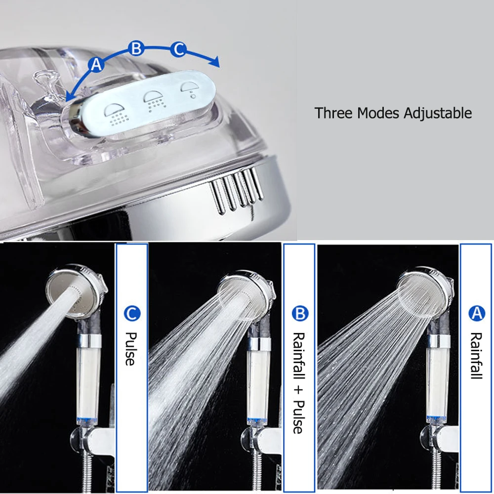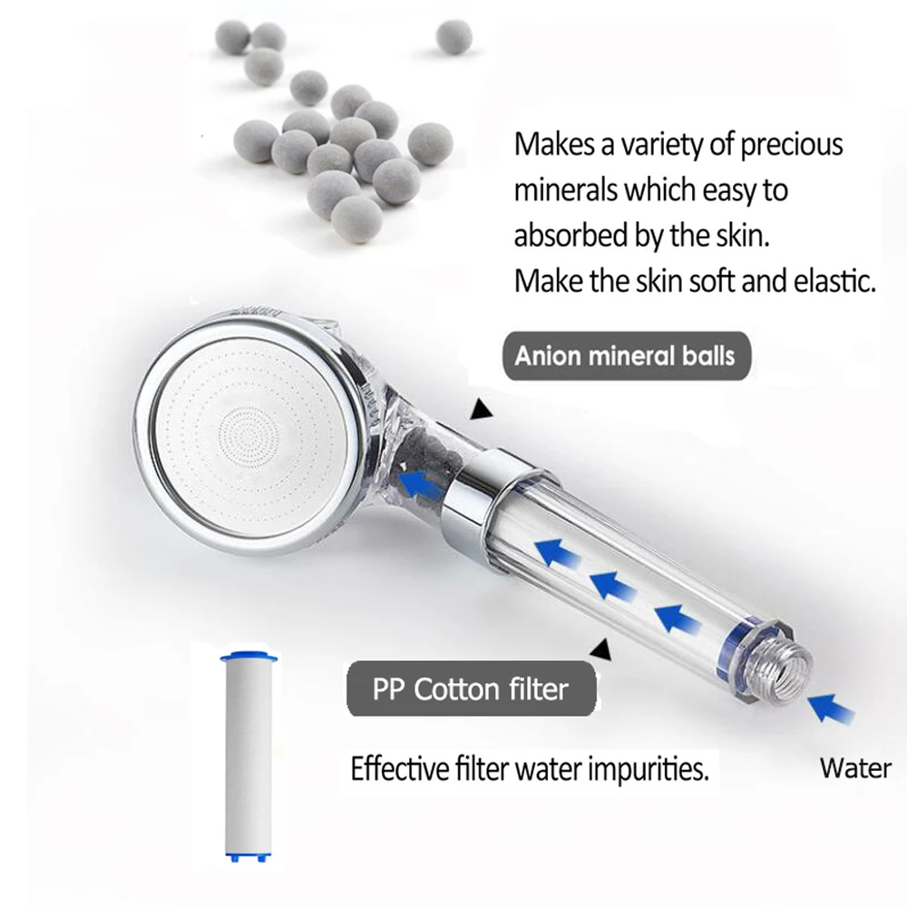 Насадка для душа для ванны, высокое давление, 3 режима, спрей, отрицательные ионы, активированные шарики, шарики для ванны, PP, хлопковый фильтр, ручная насадка для душа