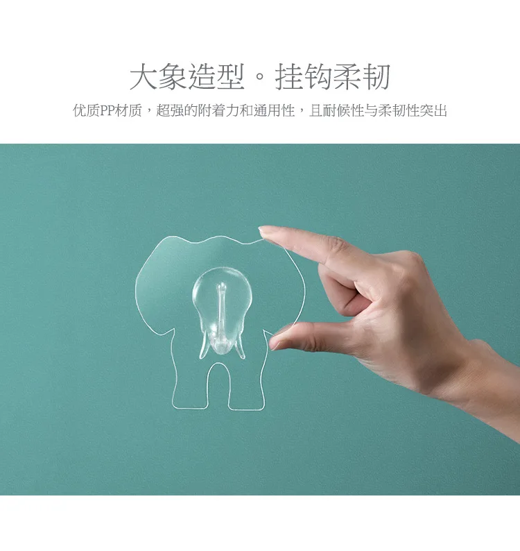 Название продукта: настенные крючки Особенность 1: Прозрачный Особенность 2: форма слона Использование: подвесной крючок для полотенец, сумочки Применение: ванная комната, кухня Размеры: 9,2 см * 9,2 см
