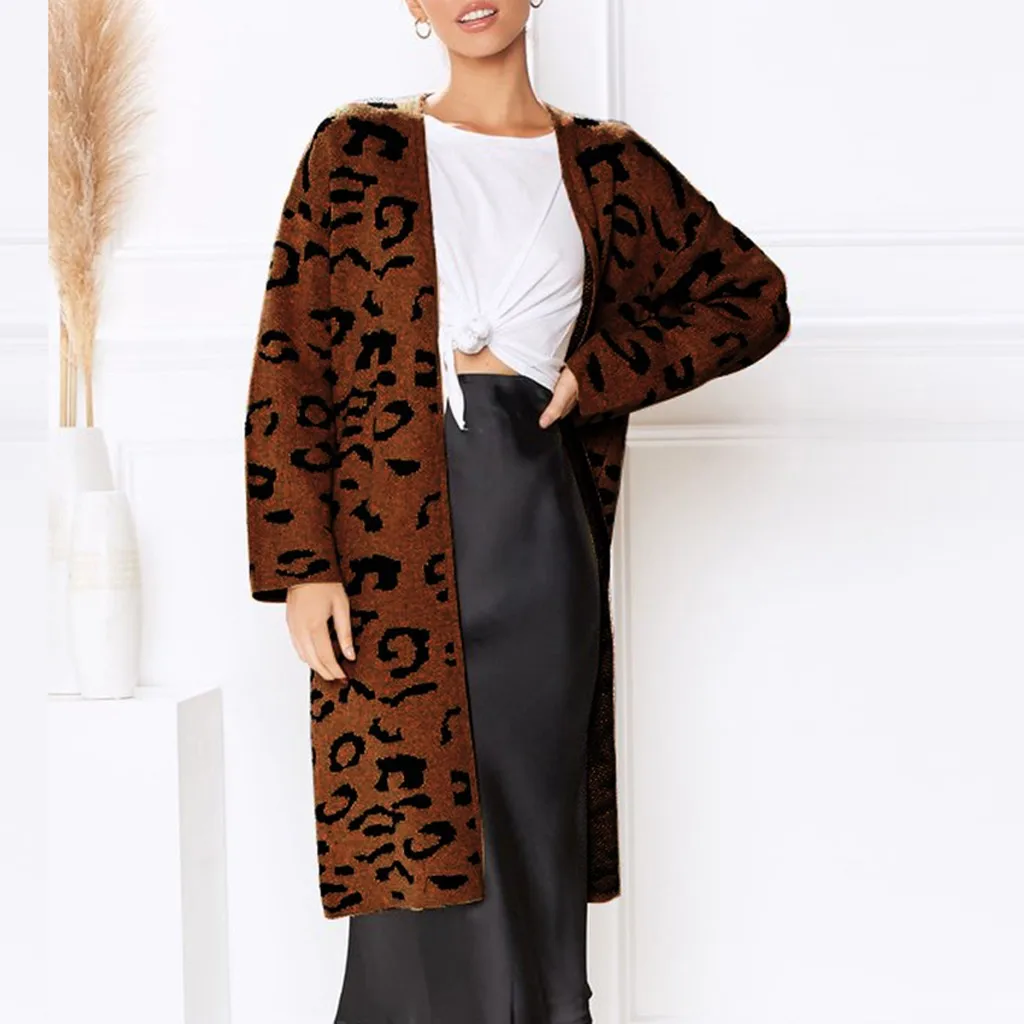 Трикотажный кардиган с длинными рукавами и открытым передом, Свитер оверсайз, верхняя одежда, пальто с карманами