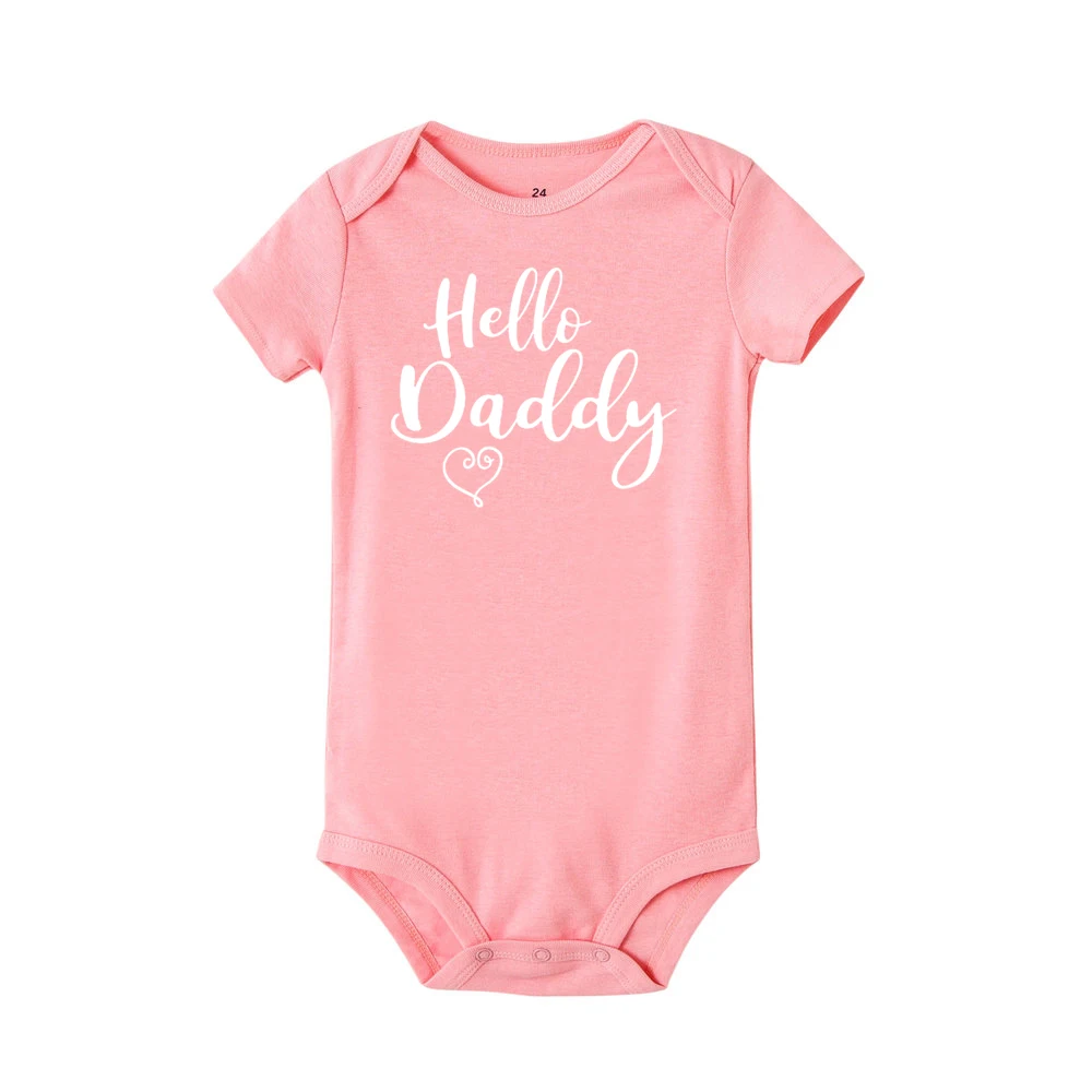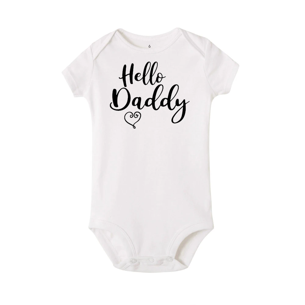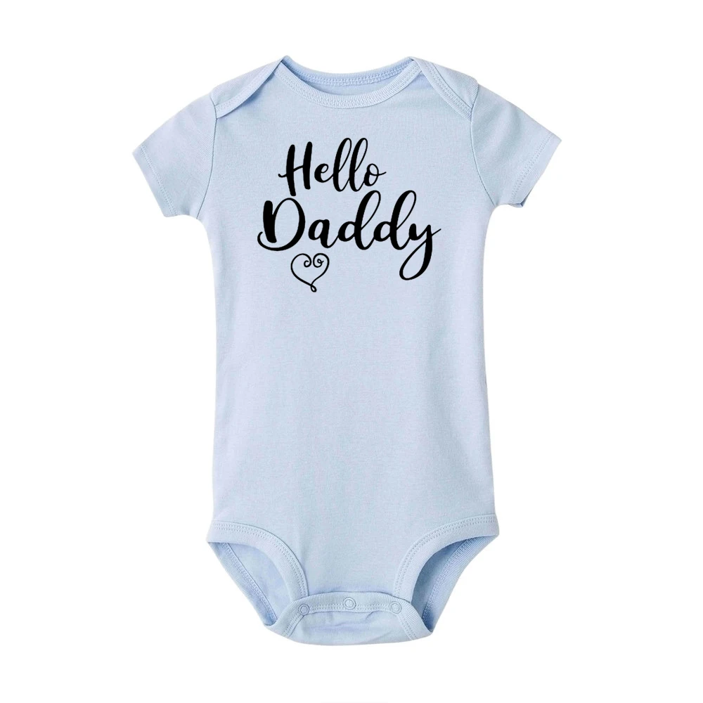 Hello Daddy/Летний хлопковый комбинезон для новорожденных мальчиков и девочек; Забавный комбинезон с короткими рукавами для младенцев; Модный комбинезон для малышей