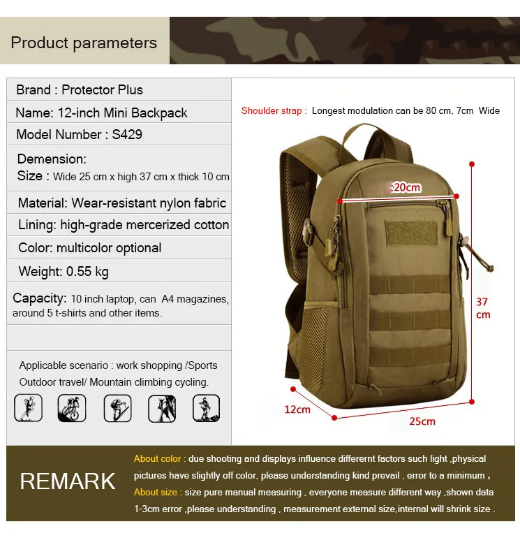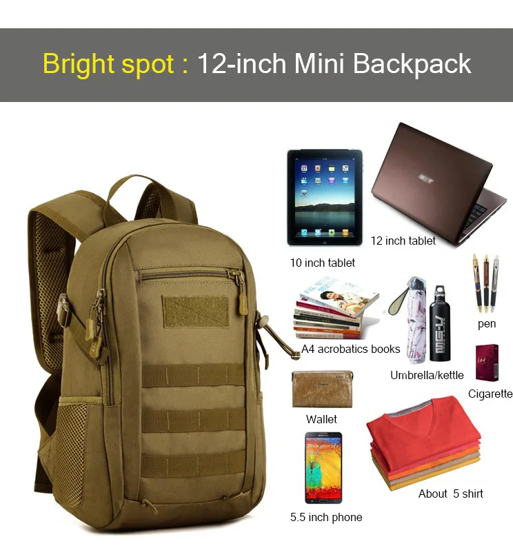 Hot Nylon 12L Tactical MOLLE Backpack Children Waterproof Small Backpack School Bag Sport Leisure Military Rucksack Assault Pack