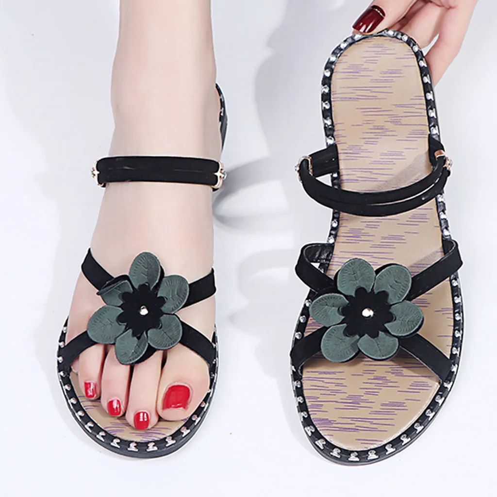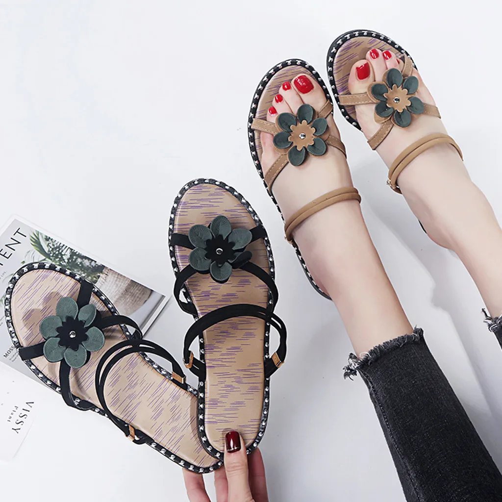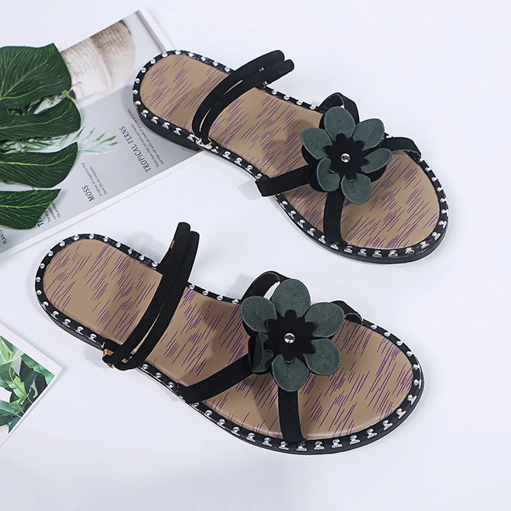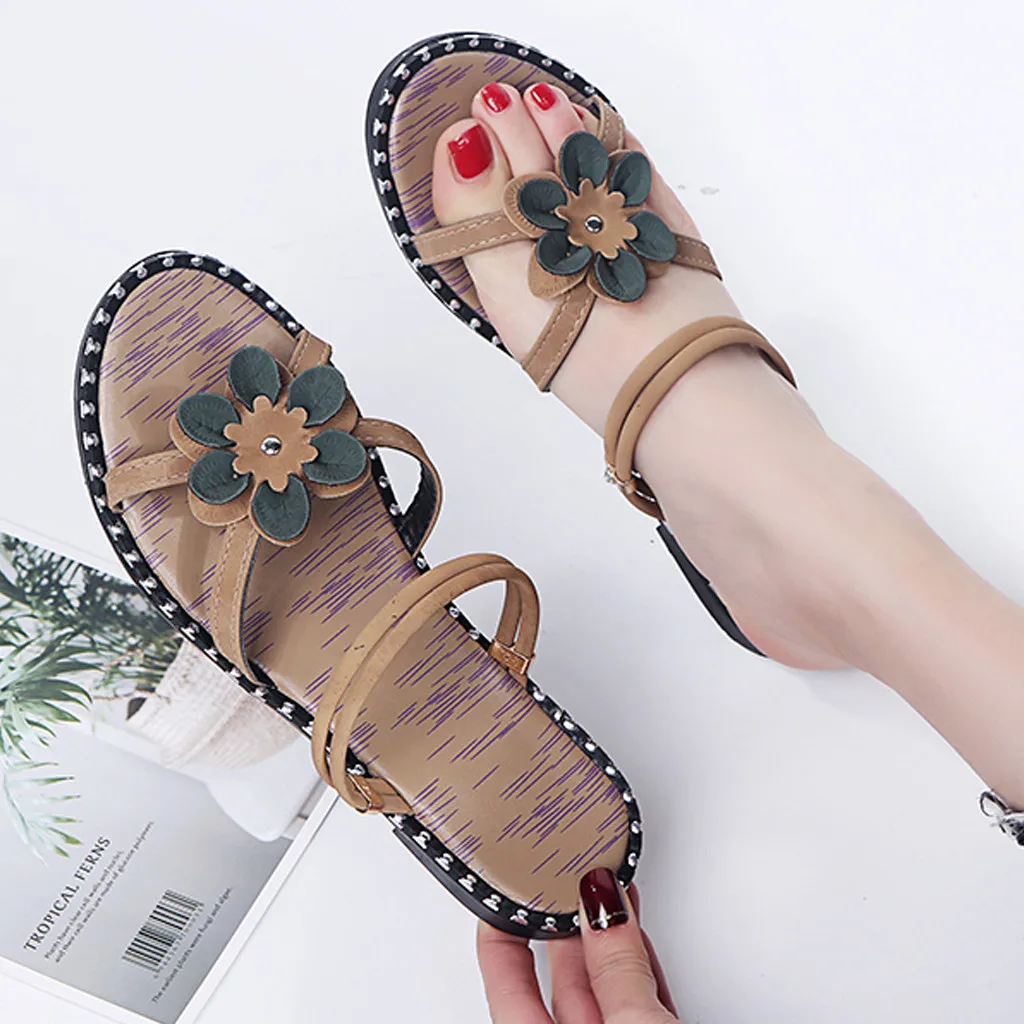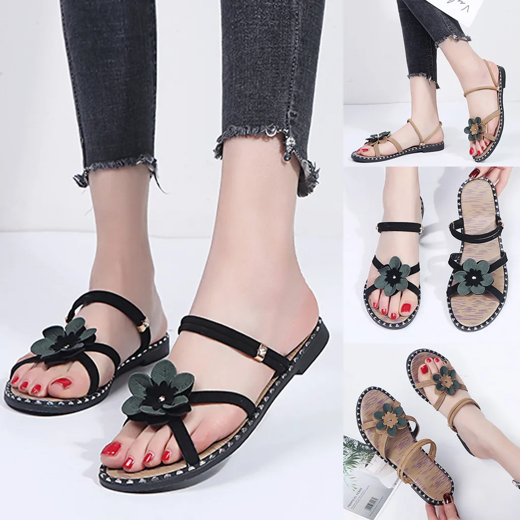 2019 Модные женские повседневные тапочки новое пляжное платье в стиле бохо плоские сандалии Досуг с открытым носком пляжная удобная обувь в римском стиле