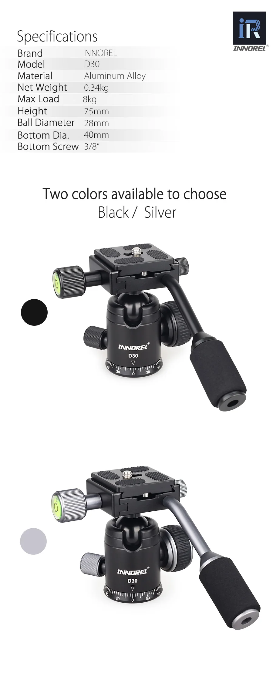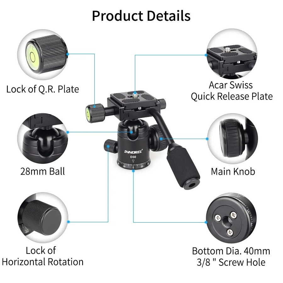 【Excellent Quality】The ball head with handle made of ultra-high strength aviation aluminium alloy, CNC processed, 0.1MM machining tolerance, anodic oxidation. In a word, the ball head mount is solid ,stable and high quality.