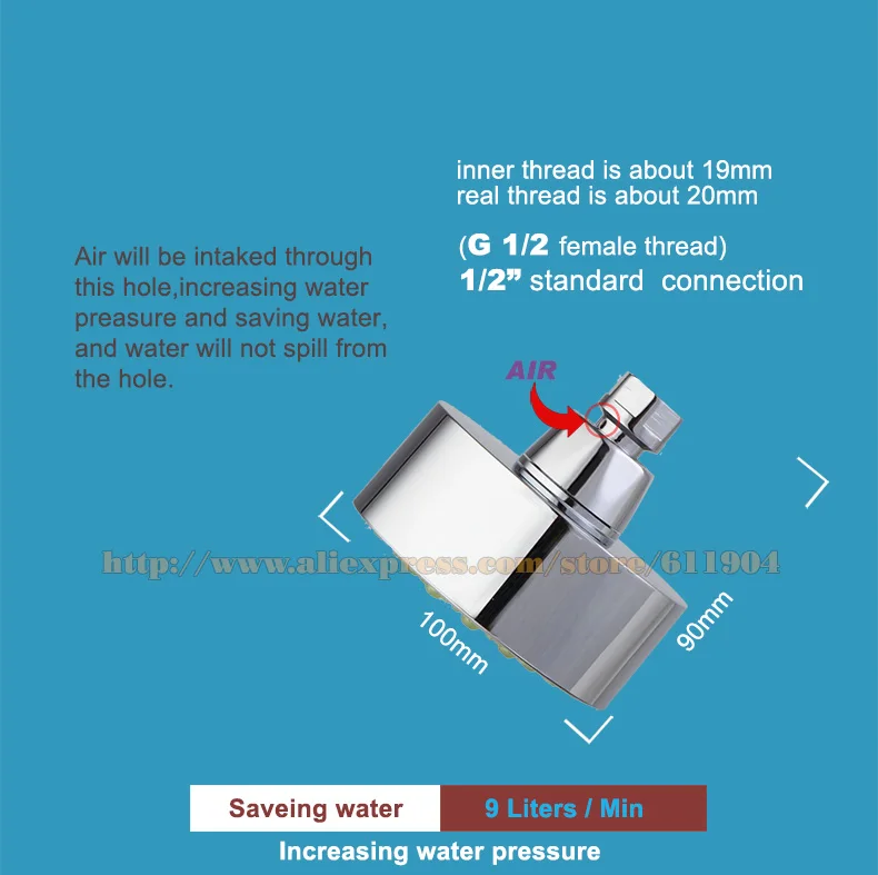 Воздух Trubo Впускной дождь Душевая Головка настенный Водосберегающие герметичный ABS хромированный верхний Душ Роза отель