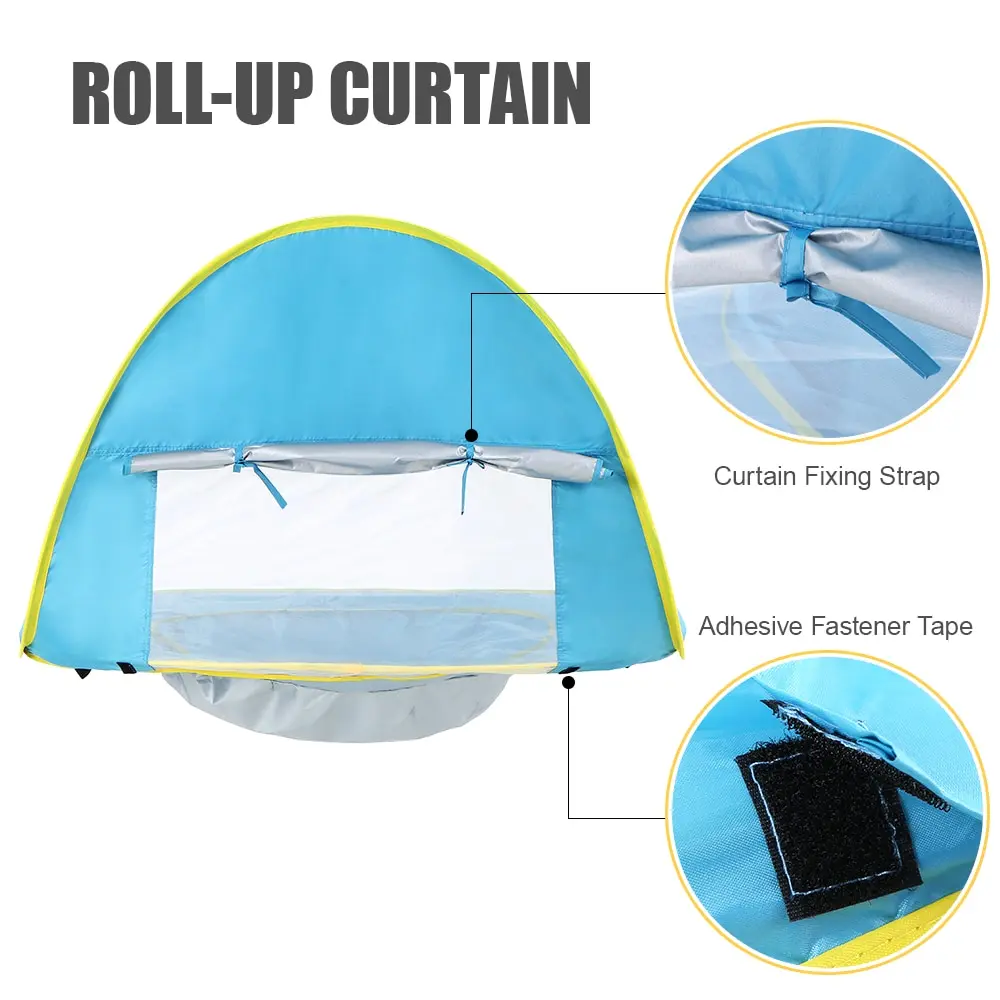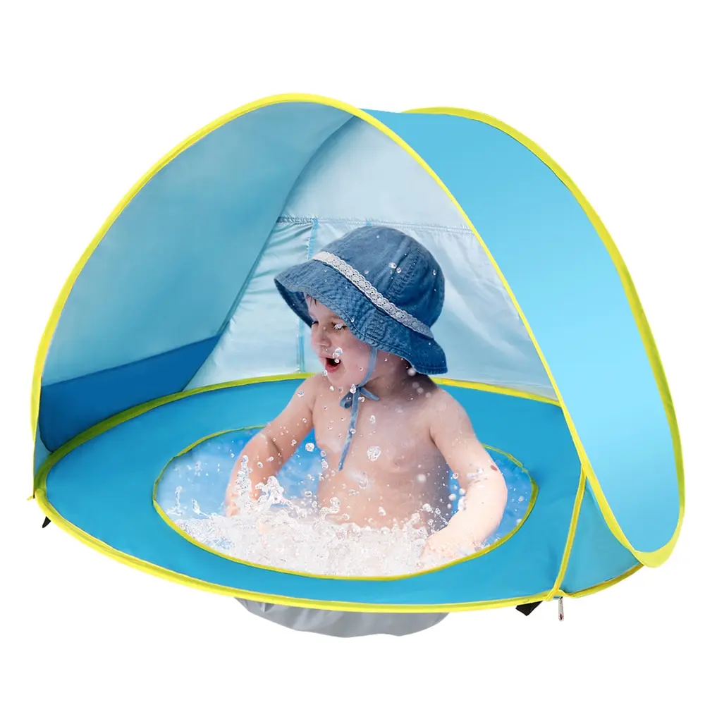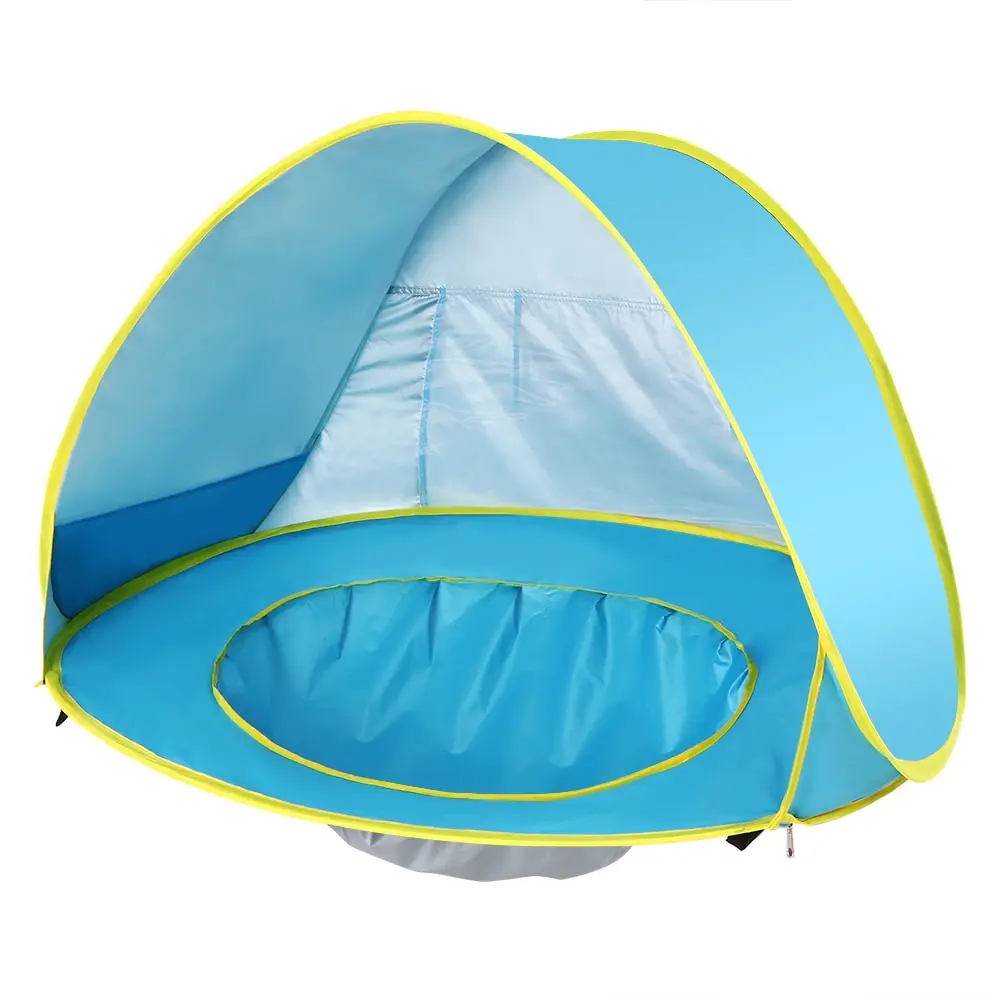 Эта палатка мгновенно выскакивает и складывается за считанные секунды, легкая, УФ-защита и воздухопроницаемость. Он имеет бассейн, чтобы ваши дети могли играть с водой без необходимости ходить на море, очень удобно.