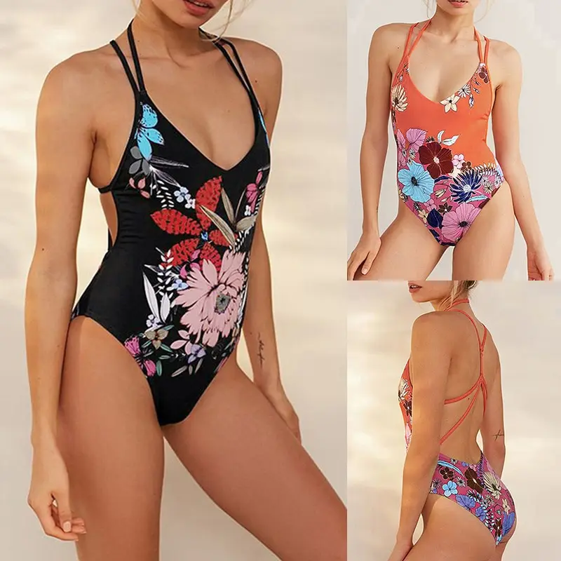 Этот сексуальный слитный купальник имеет винтажный цветочный принт, открытая спина с перекрестной повязкой, самозавязывающийся Холтер и высокие Обрезанные ноги, чтобы показать ваши привлекательные изгибы тела. В периметра взлетно-посадочной вверх наполнитель чашки является съемной.