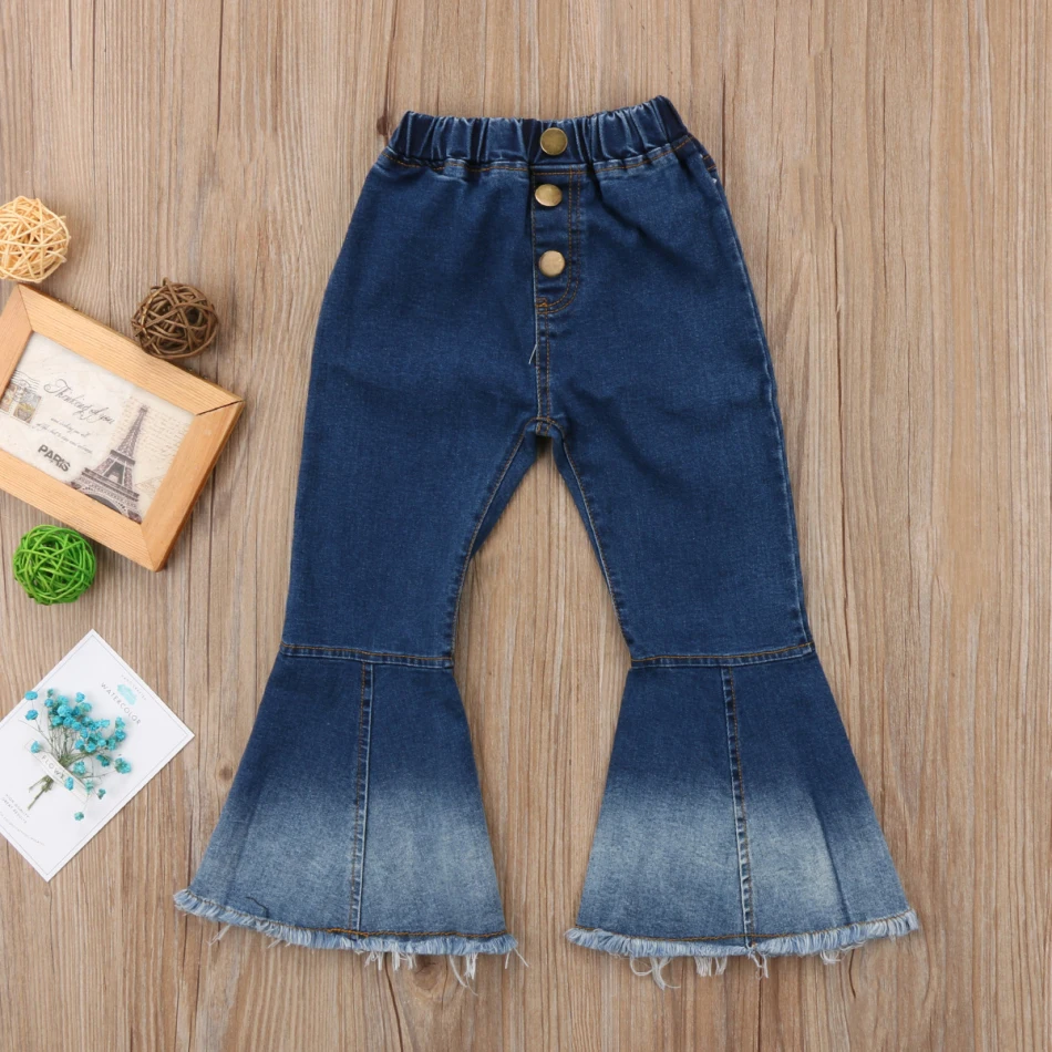 Новейшая модная детская одежда для маленьких девочек; джинсовые штаны с колокольчиками!
