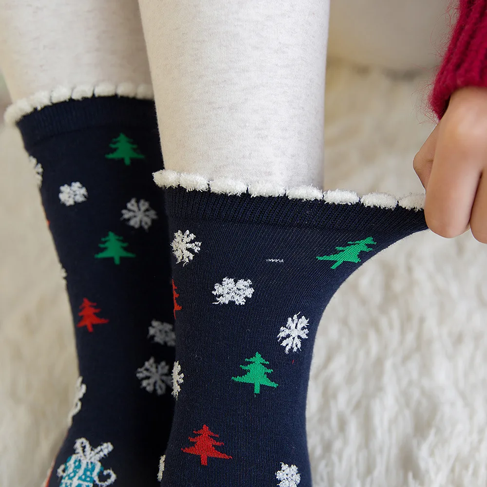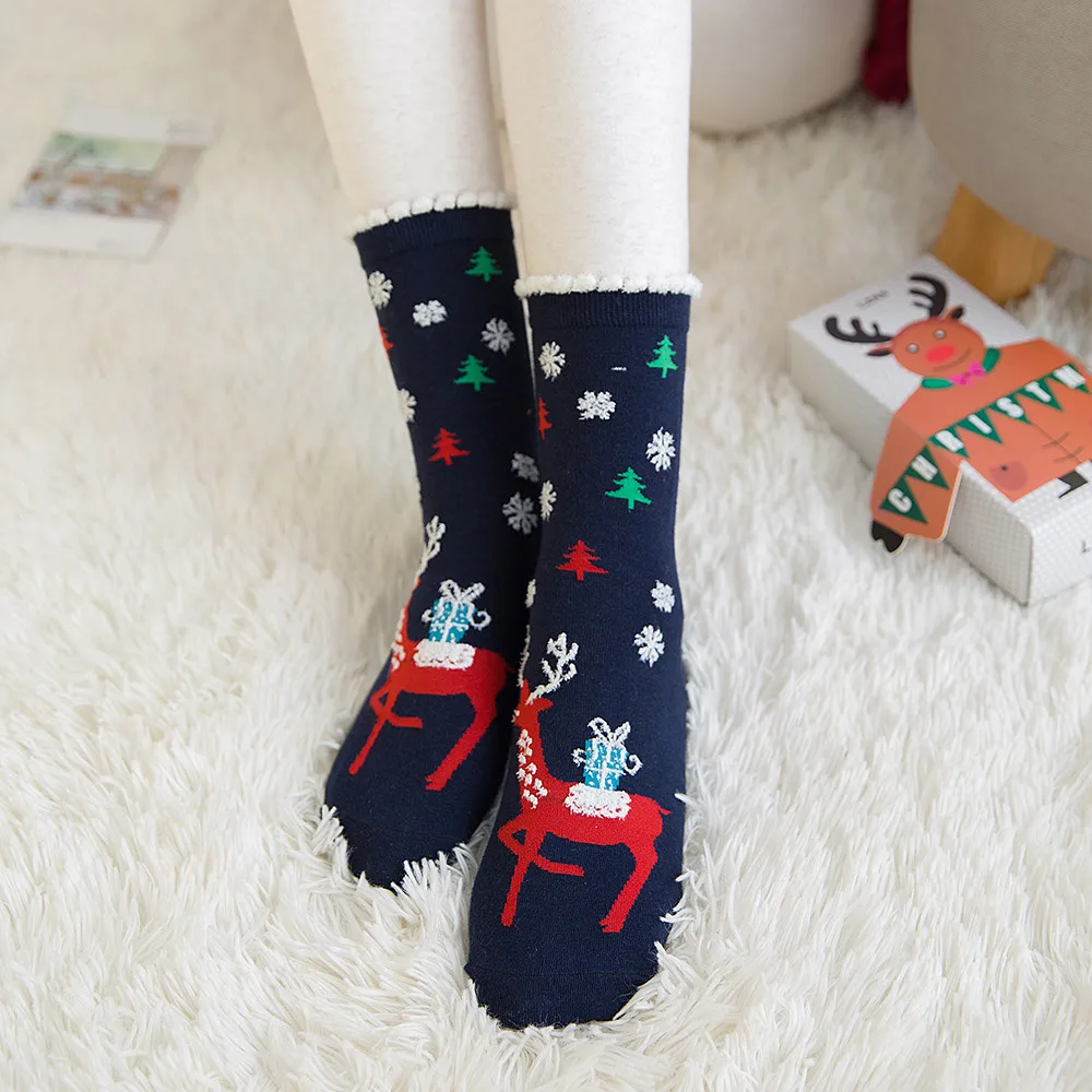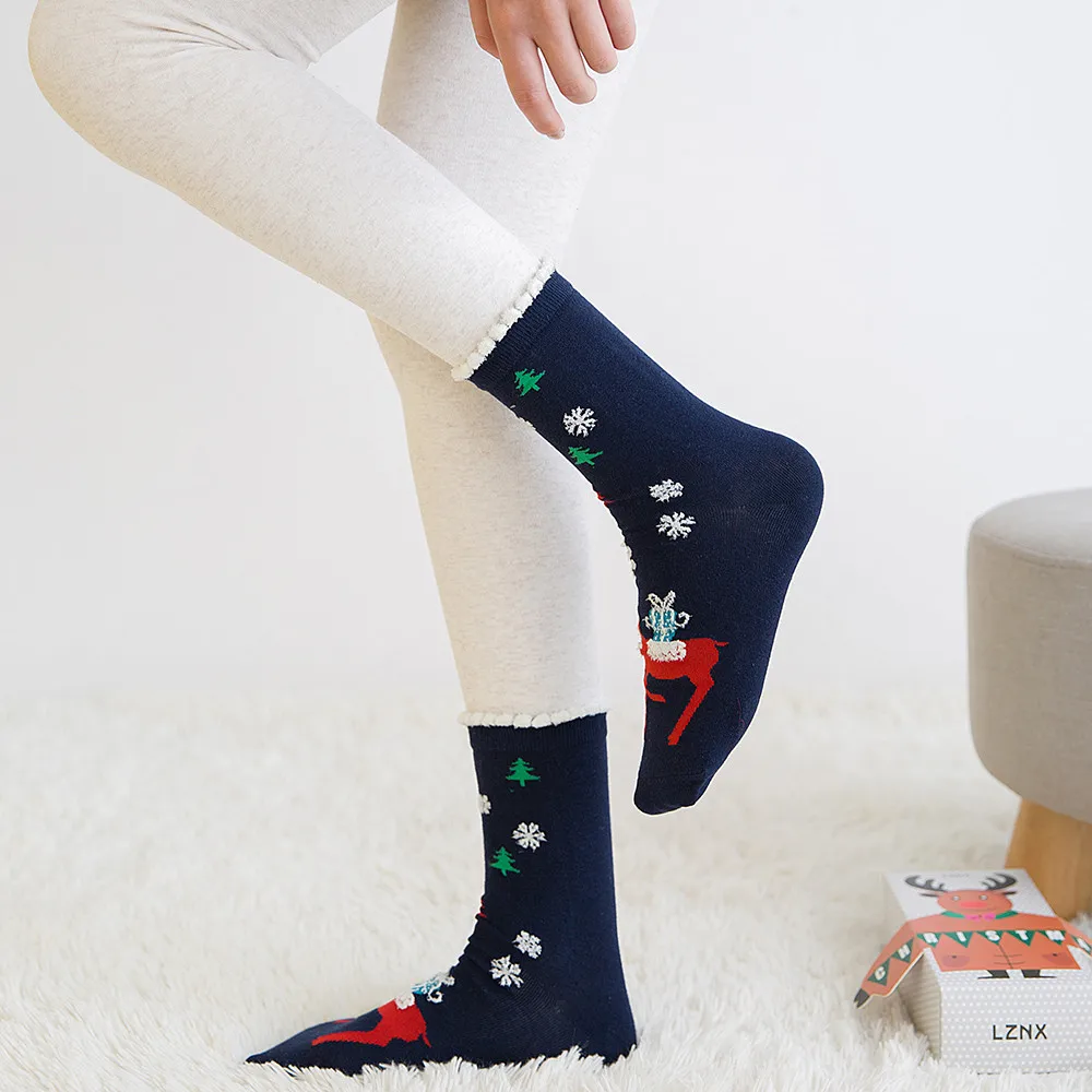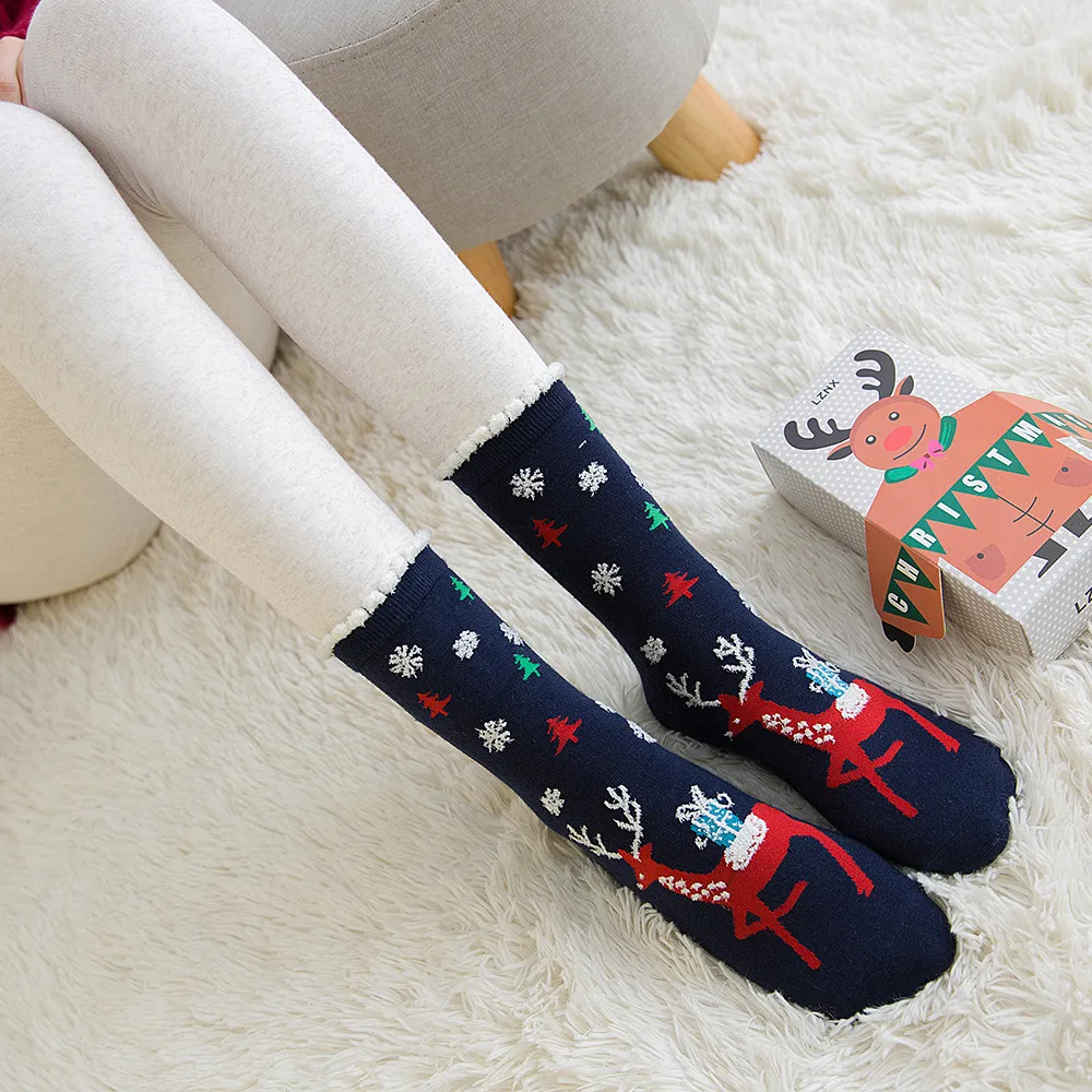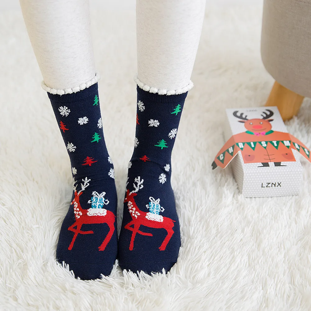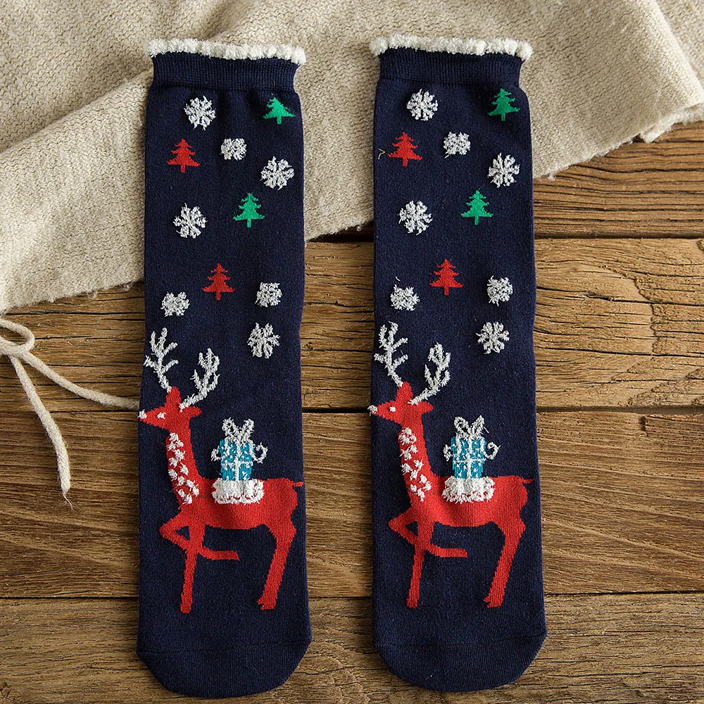 Рождественские женские хлопковые носки, разноцветные женские зимние носкиОсобенности: