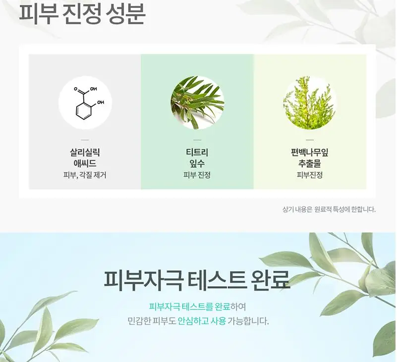 Соленая кислота, листолистная вода чайного дерева и экстракт листьев ципресса успокаивают кожу.