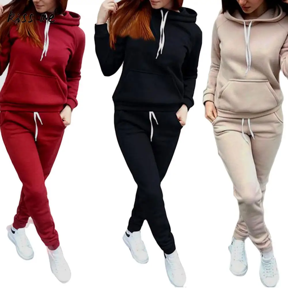 Solid Two Piece Cotton Sport Running Set Pants Hooded Sweaters Gym Legging Training Sportswear Fitness Jogging Sport Suit