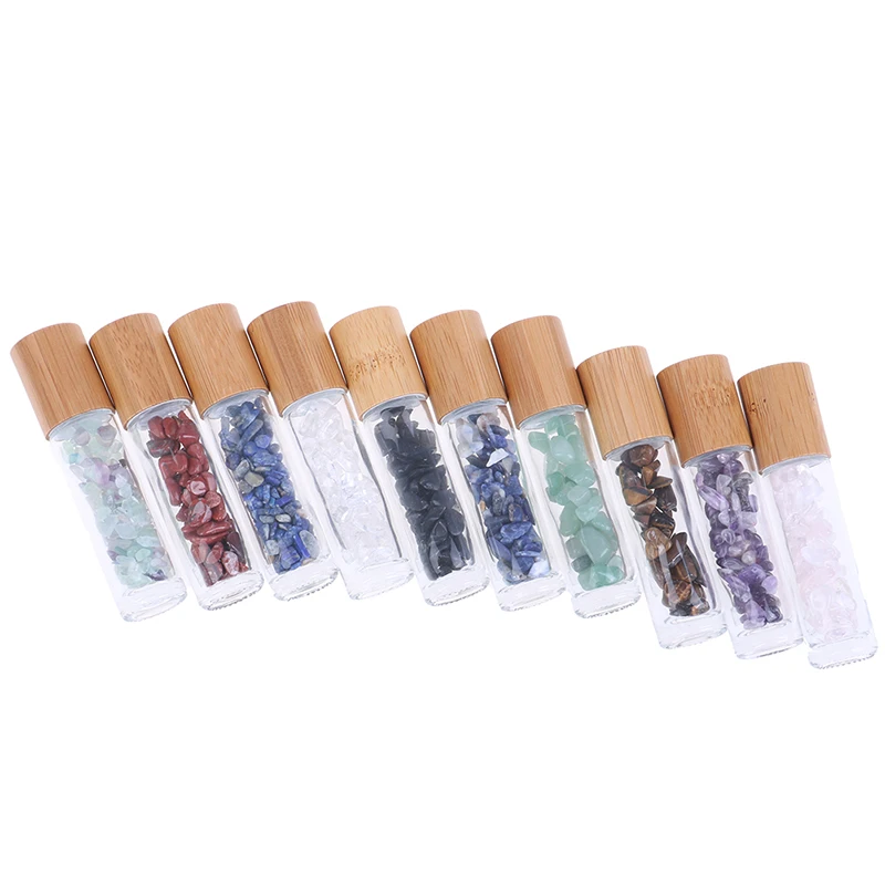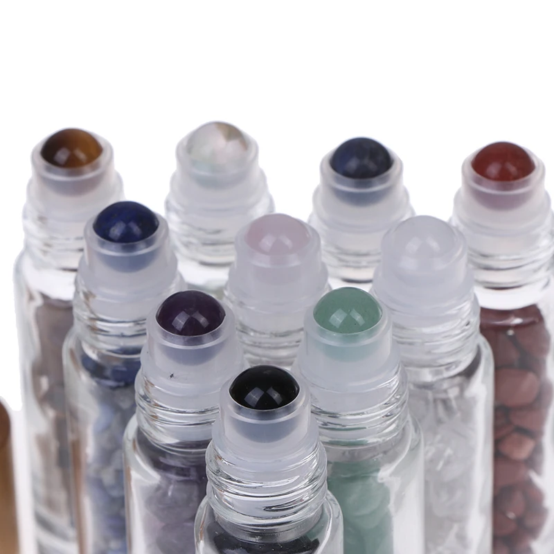 Каждый драгоценный камень роликовые шары соответствует соответствующие мини кристаллические каменные чипы, которые в бутылках. Эти кристаллические кристаллы стерилизуются в кипящей воде, а затем высушиваются ветром. Обратите внимание, что натуральные камни отличаются по цвету, их нельзя избежать.