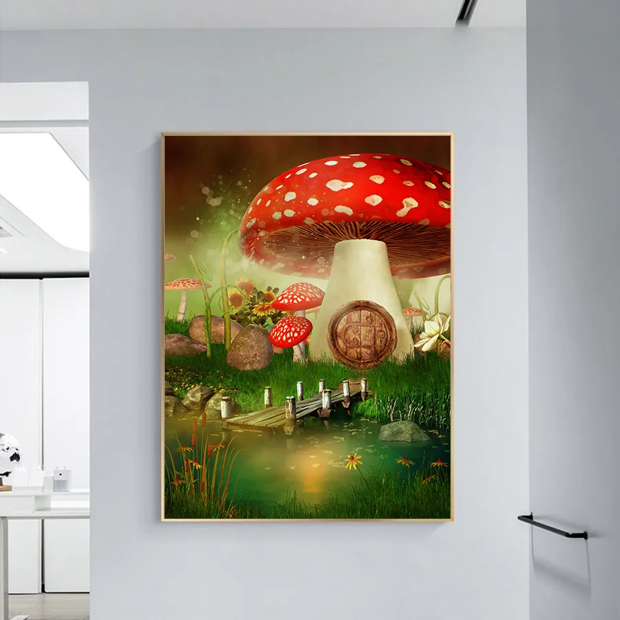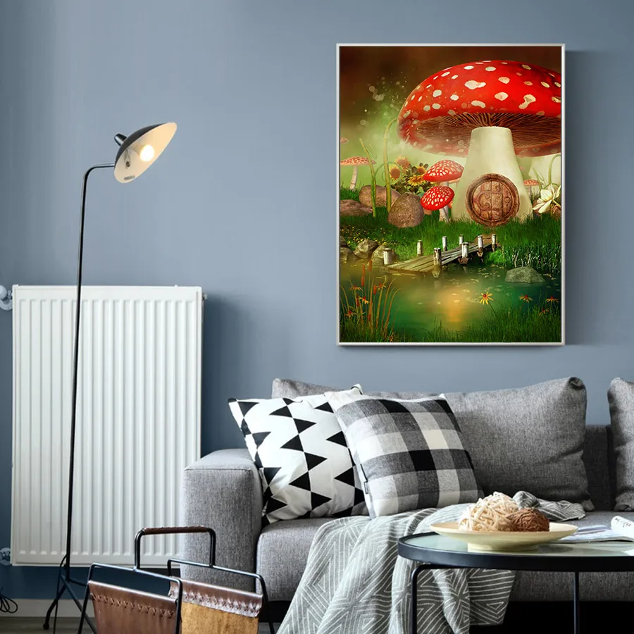 Cross stitch kits Embroidery needlework sets 11CT water soluble canvas patterns 14CT Mushroom house-NCMS047