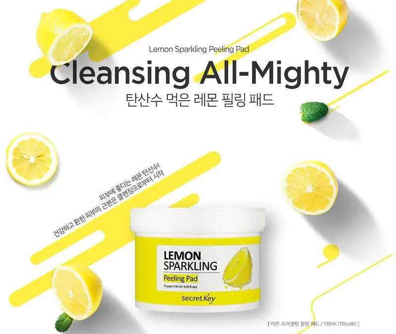 SECRET KEY лимон сверкающими пилинг Pad 70 шт. уход за кожей лица средство для отшелушивания кожи от прыщей черных точек уход за лицом Отшелушивающий Косметика Кореи