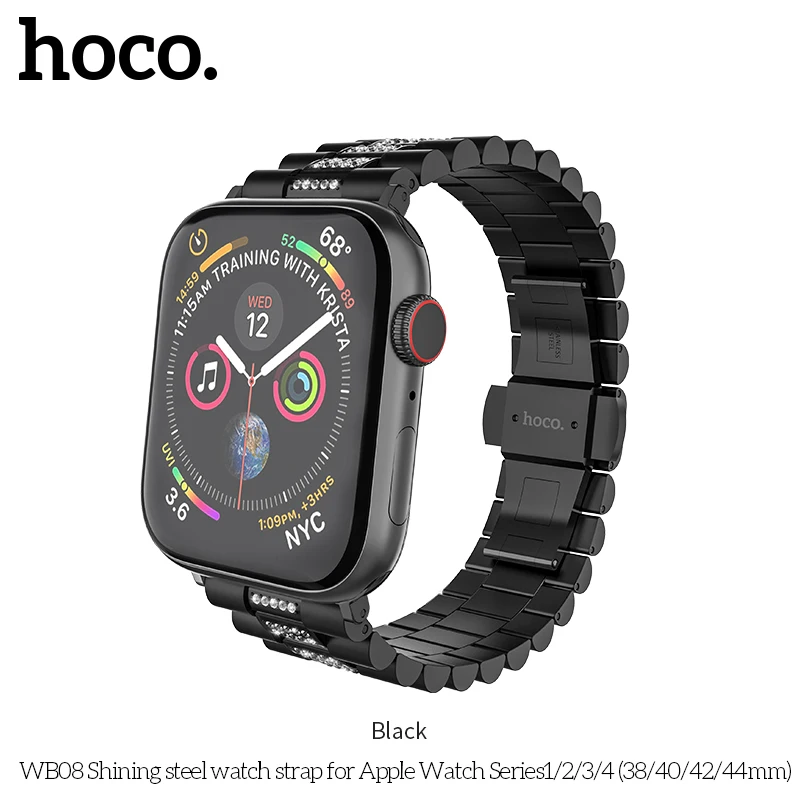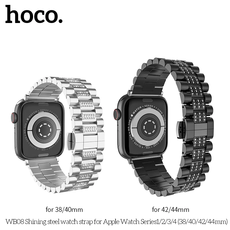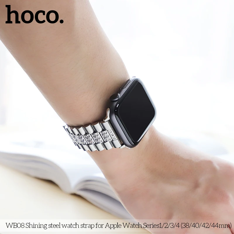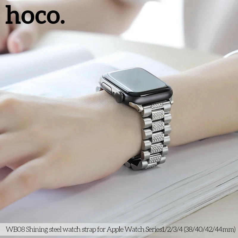 Подходит для Apple Watch Series 1/2/3/4 Изготовлен из нержавеющей стали 316L и стразы 100% оригинальный продукт HOCO, Новый в розничной упаковке Поставляется с инструментом регулировки, легко регулировать длину, чтобы соответствовать вашему запястью Дизайн по контракту, с вашей жизнью и не простоПосылка включает в себя: