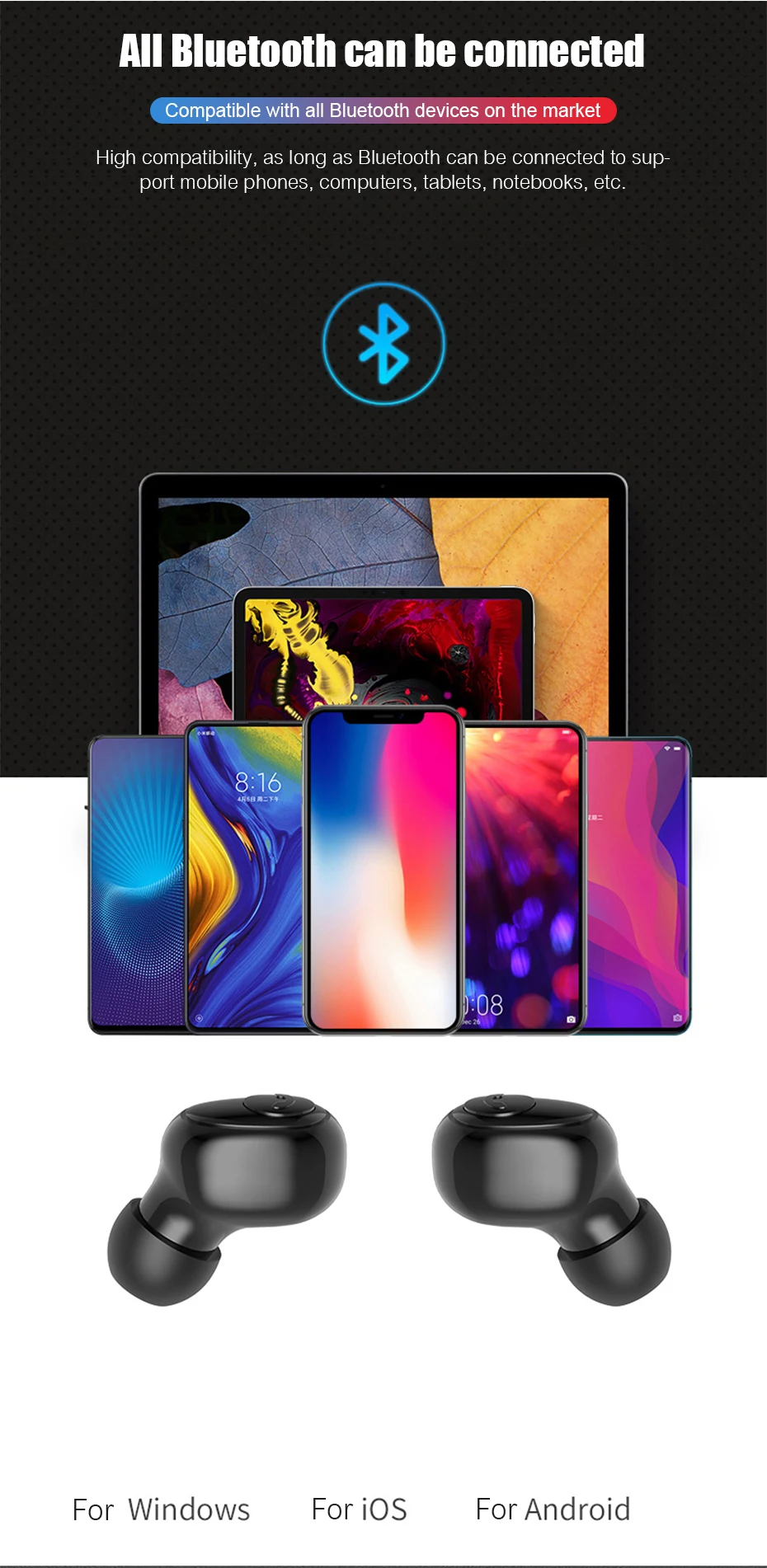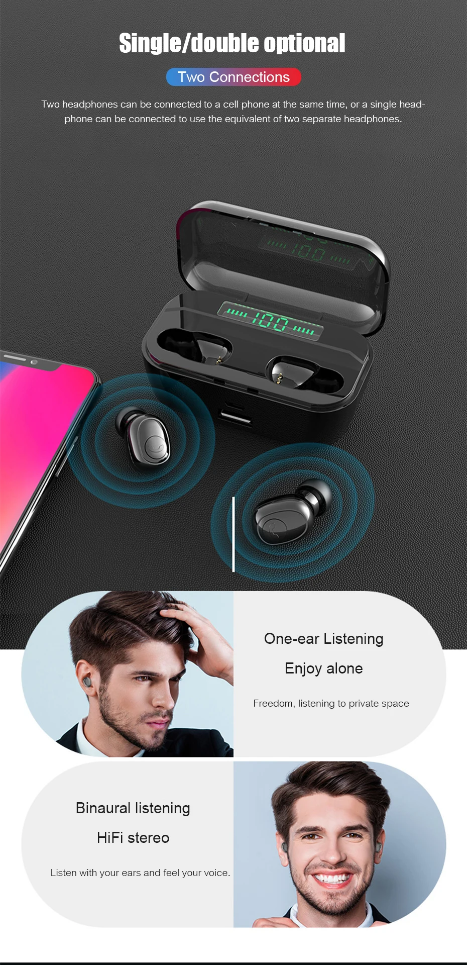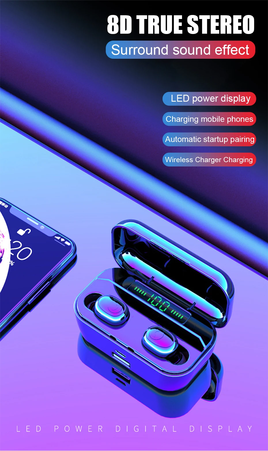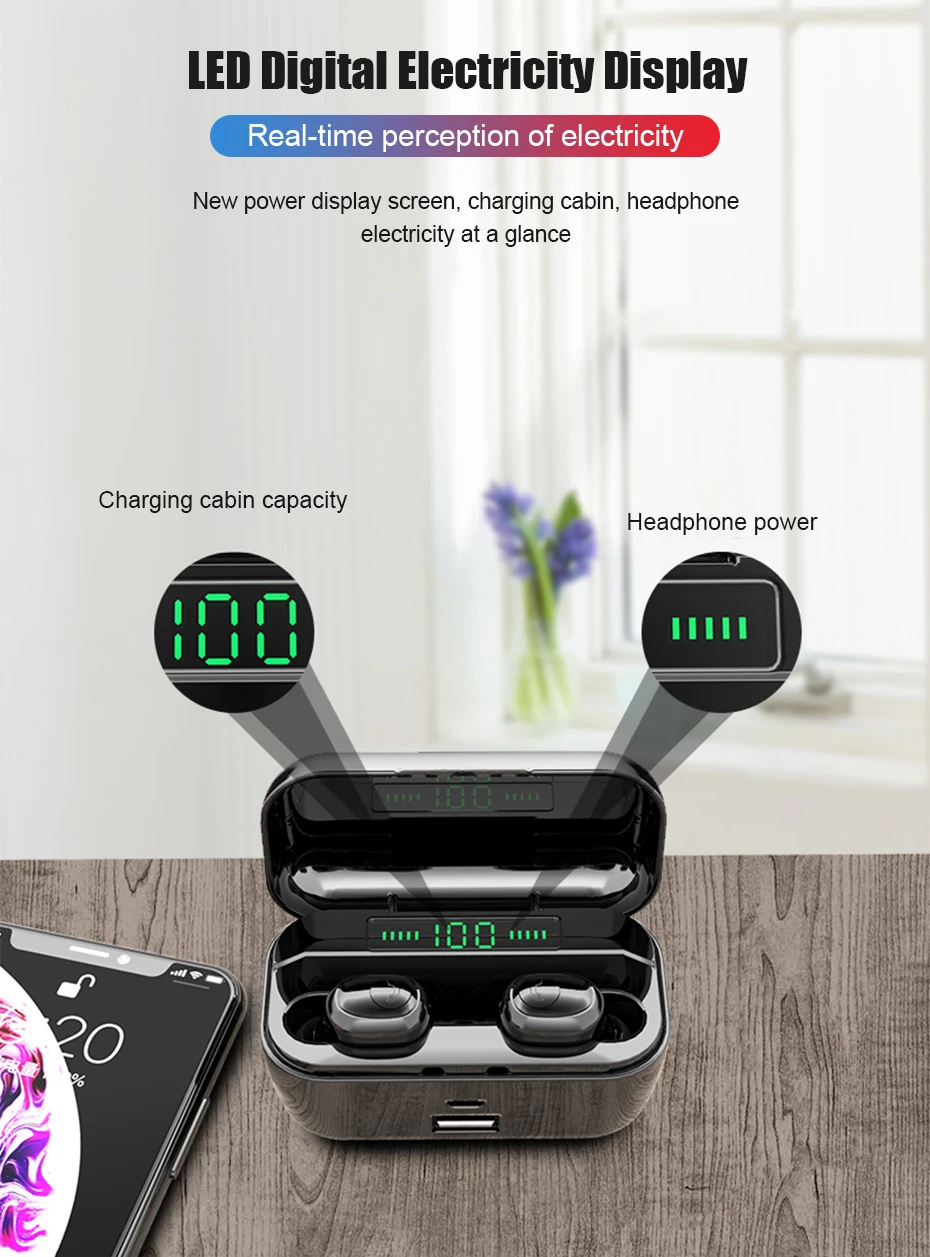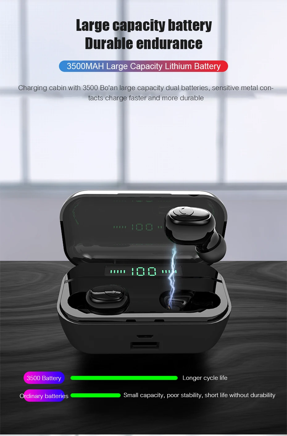 Светодиодный экран с цифровым дисплеем Аккумулятор большой емкости 3500 мАч, перезаряжаемый мобильный телефон, длительное время Емкость наушников: 45 мА · ч Поддержка беспроводную зарядку HIFI Качество звука, 8D истинное стерео Автоматическое включение/выключение, Автоматическое Сопряжение Бинауральные вызовы Bluetooth 5,0 Время работы музыки: 4-6 часов Время вызова: 3-5 часов Водонепроницаемый: глубокий IPX7