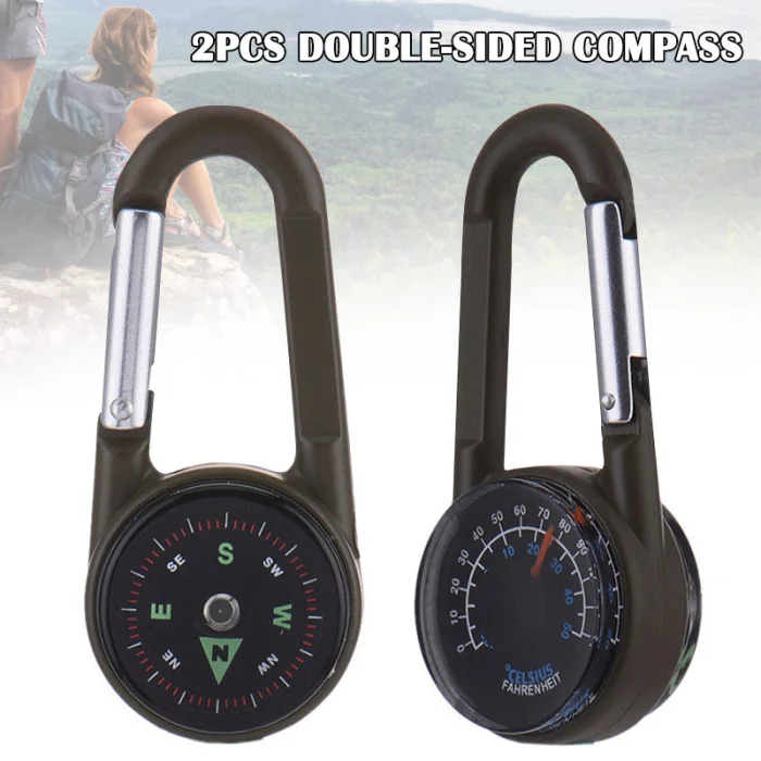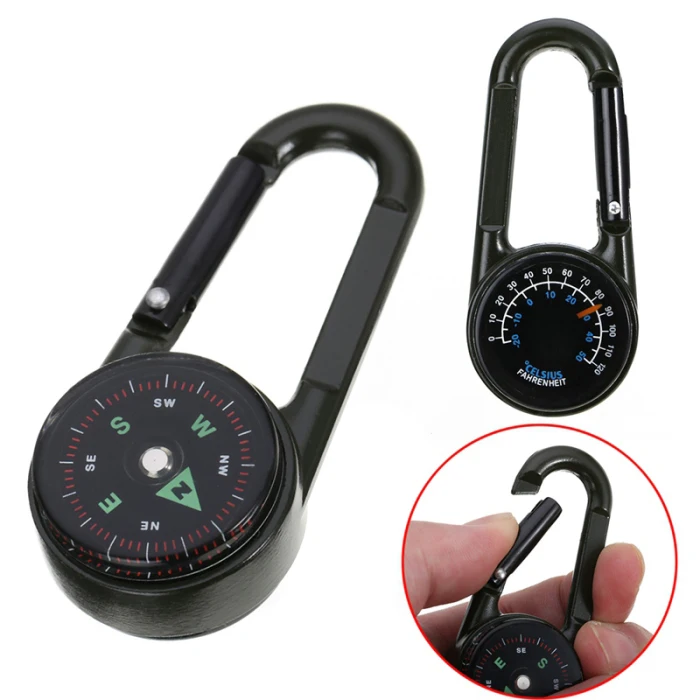 Новинка 2 шт. 3 в 1 Алюминиевый карабин компас термометр брелок для ключей для походов кемпинга BN99