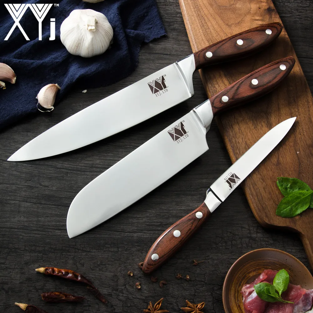 XYj 7 ''нож Santoku из нержавеющей стали 7CR17 с острым лезвием, цветная ручка с изгибом дерева 8'' шеф-повар 5 '', универсальный нож, кухонные инструменты