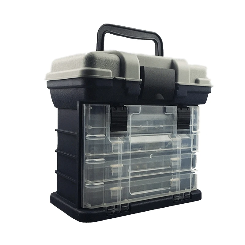 Portable 5 Layer PP+ABS Fishing Tackle Box with Plastic Handle Big Fishing Lures Tools Box Fishing Accessories Case 26x17x26cm