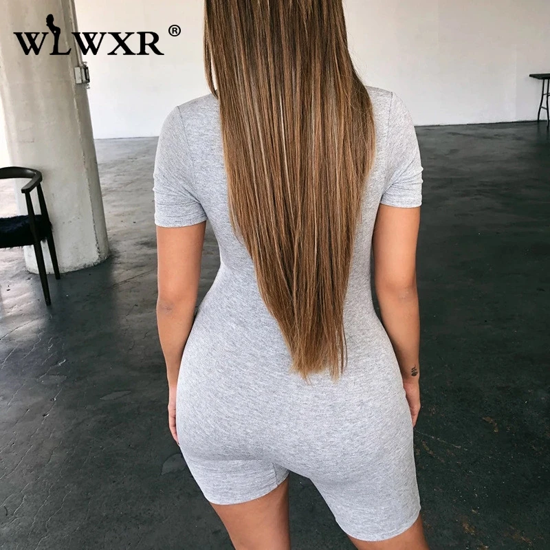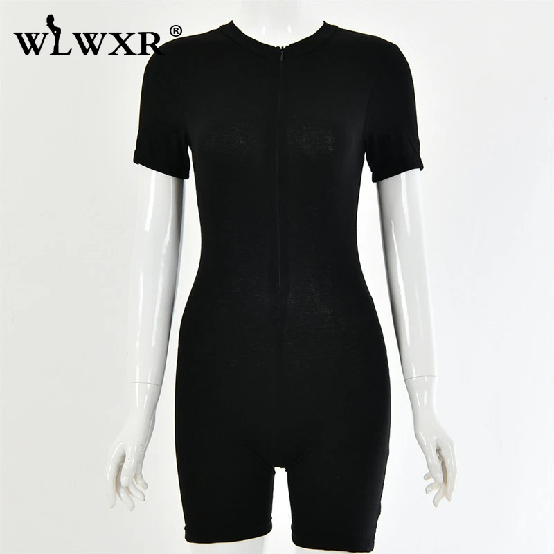 WLWXR сексуальный облегающий женский комбинезон, шорты, пляжный костюм на молнии с короткими рукавами Летний комбинезон обтягивающий женский черный комбинезон женский комбинезон