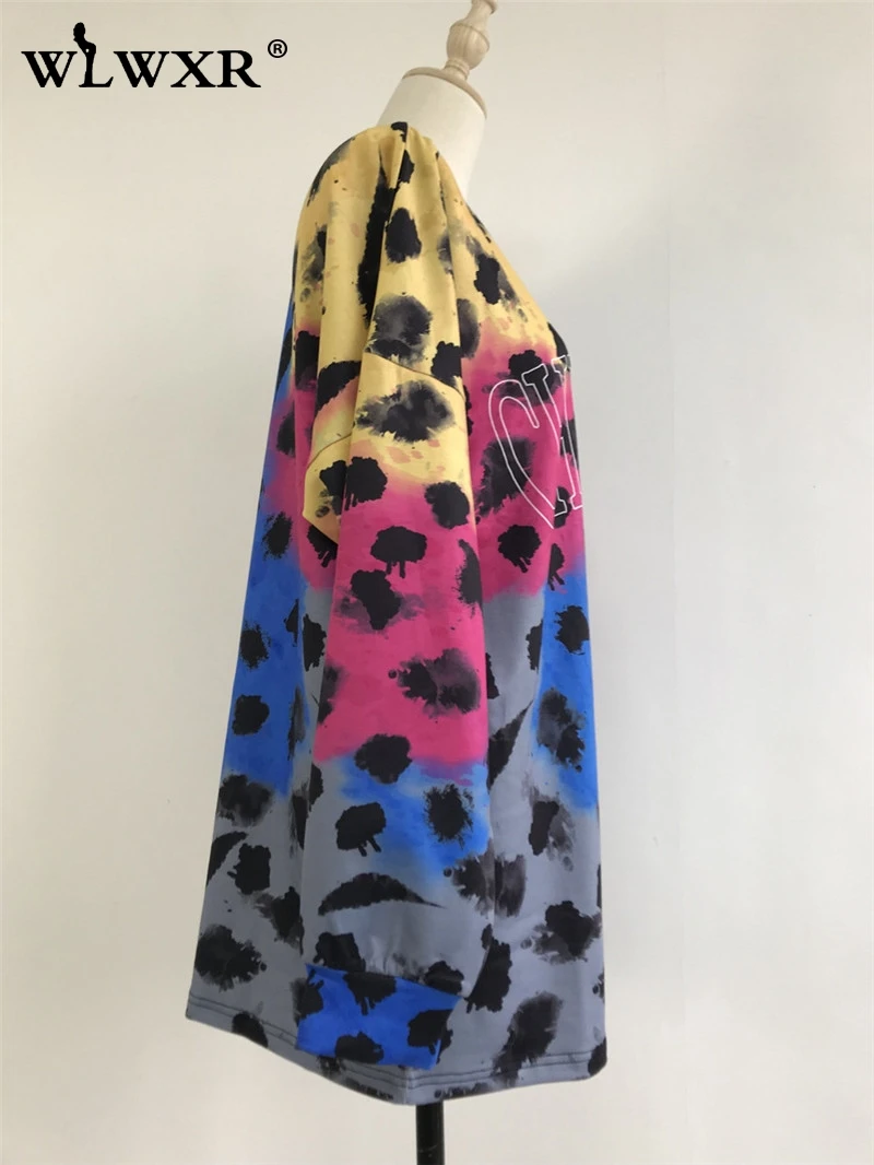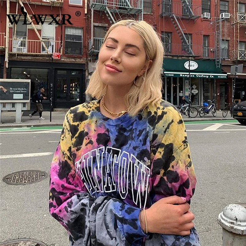 FQLWL с буквенным принтом уличная негабаритная Толстовка для женщин Топ Галстук Краситель Длинная толстовка с капюшоном Женский пуловер с круглым вырезом Harajuku Свободная Толстовка