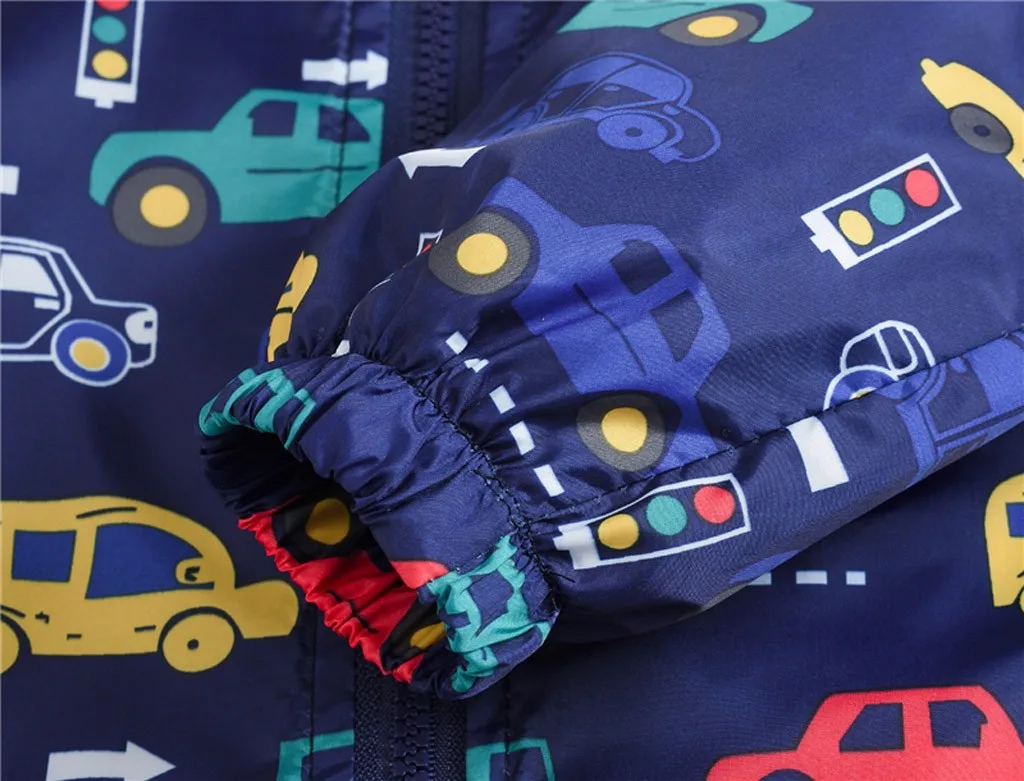 Детское весеннее пальто с капюшоном с рисунком кота и машины для маленьких мальчиков и девочек, куртка, топы
