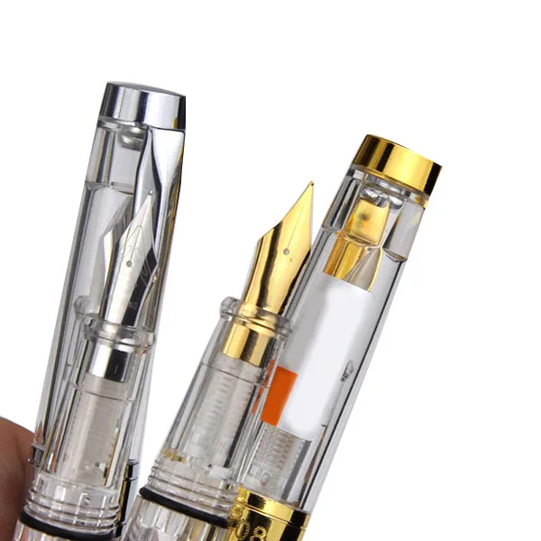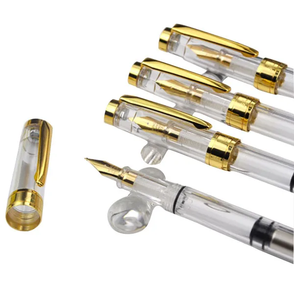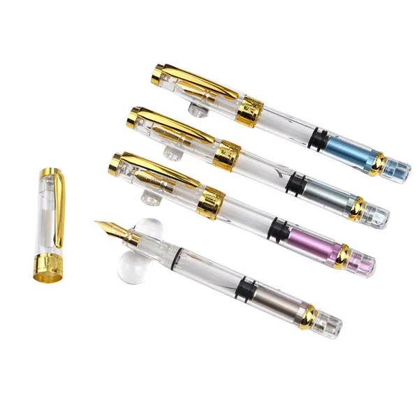 Прозрачная поршневая перьевая ручка, прозрачные чернила демонстратора, золотой Иридиевый тонкий наконечник, новый дизайн