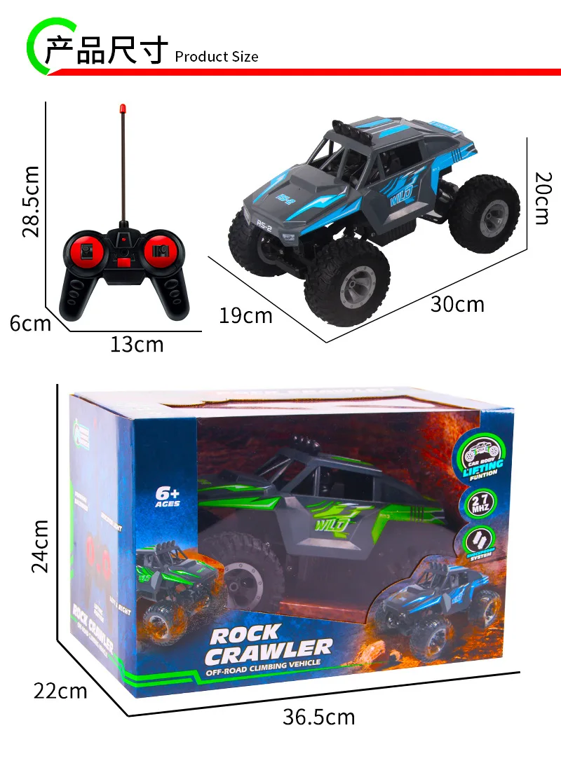 [Название продукта]: QF662 альпинистский автомобиль [Способ упаковки]: коробка с окошком [Размер товара]: 31*20*21 см [Размер цветной коробки]: 36,5*22*24 см [Цвет]: зеленый/синий Примечания: для данного изделия требуются 2 батарейки № 5 и отвертка (самостоятельно)