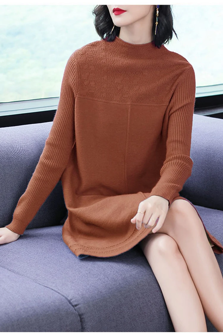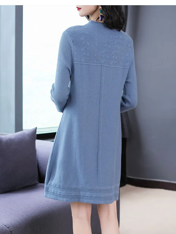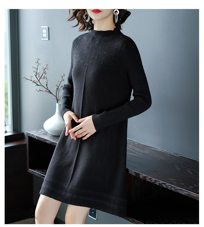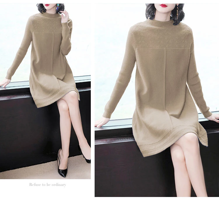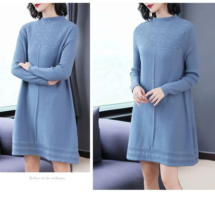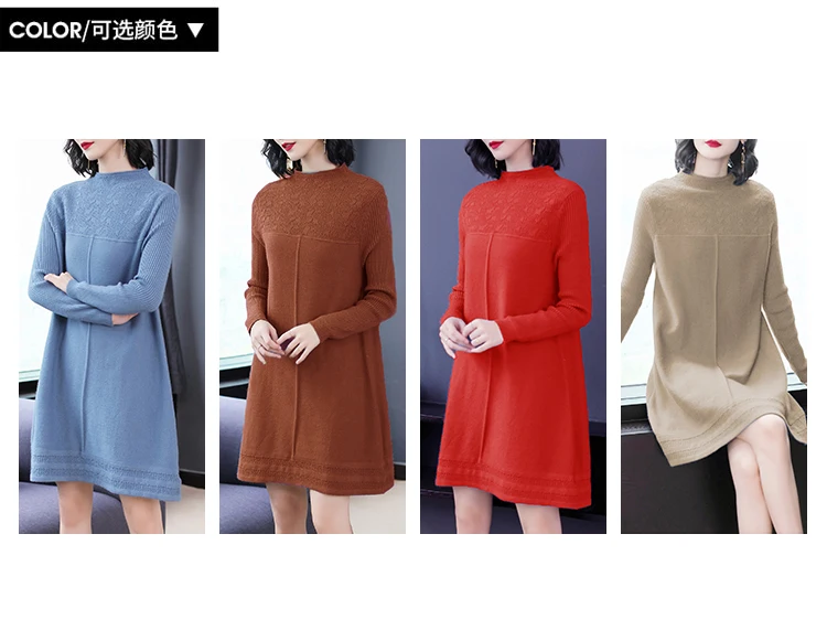 Женские свитера с круглым вырезом, повседневные однотонные вязаные платья в Корейском стиле на осень и зиму, 2019