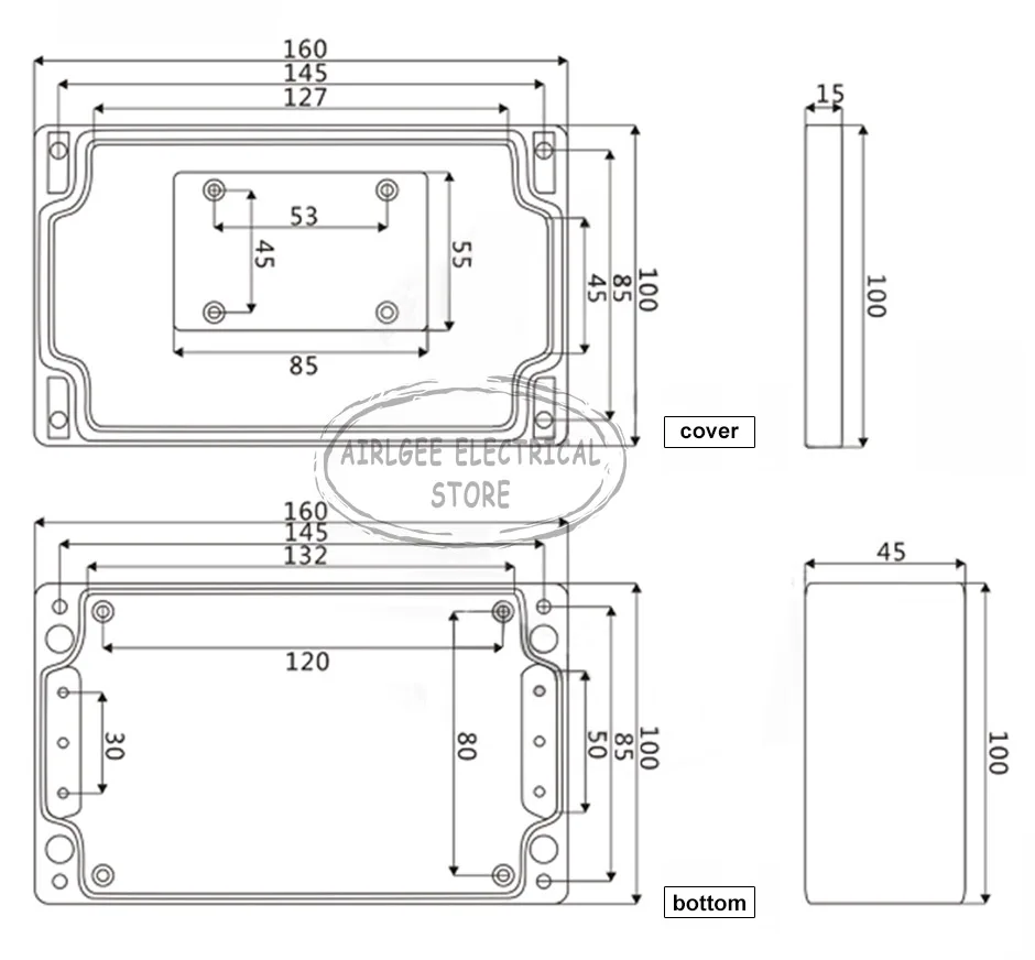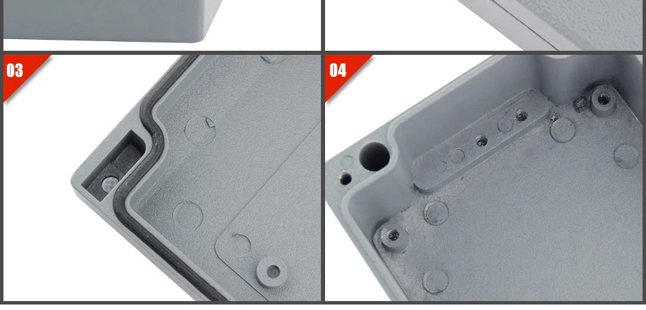 В нижней части коробки есть несколько монтажных отверстий для легкого крепления электронных компонентов, таких как клеммы, рельсы и доски.