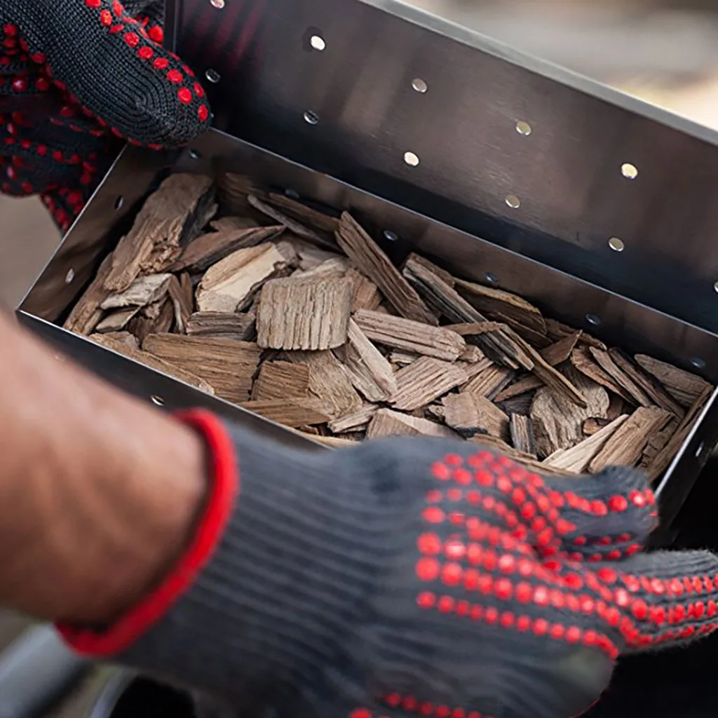 Porous design: you can add delicious smoky flavor to your barbecue food.Made of sturdy and durable 430 stainless steel, the smoke box can be well preserved at high temperaturesLarge capacity: can store various specifications of wooden blocksSpecifications: