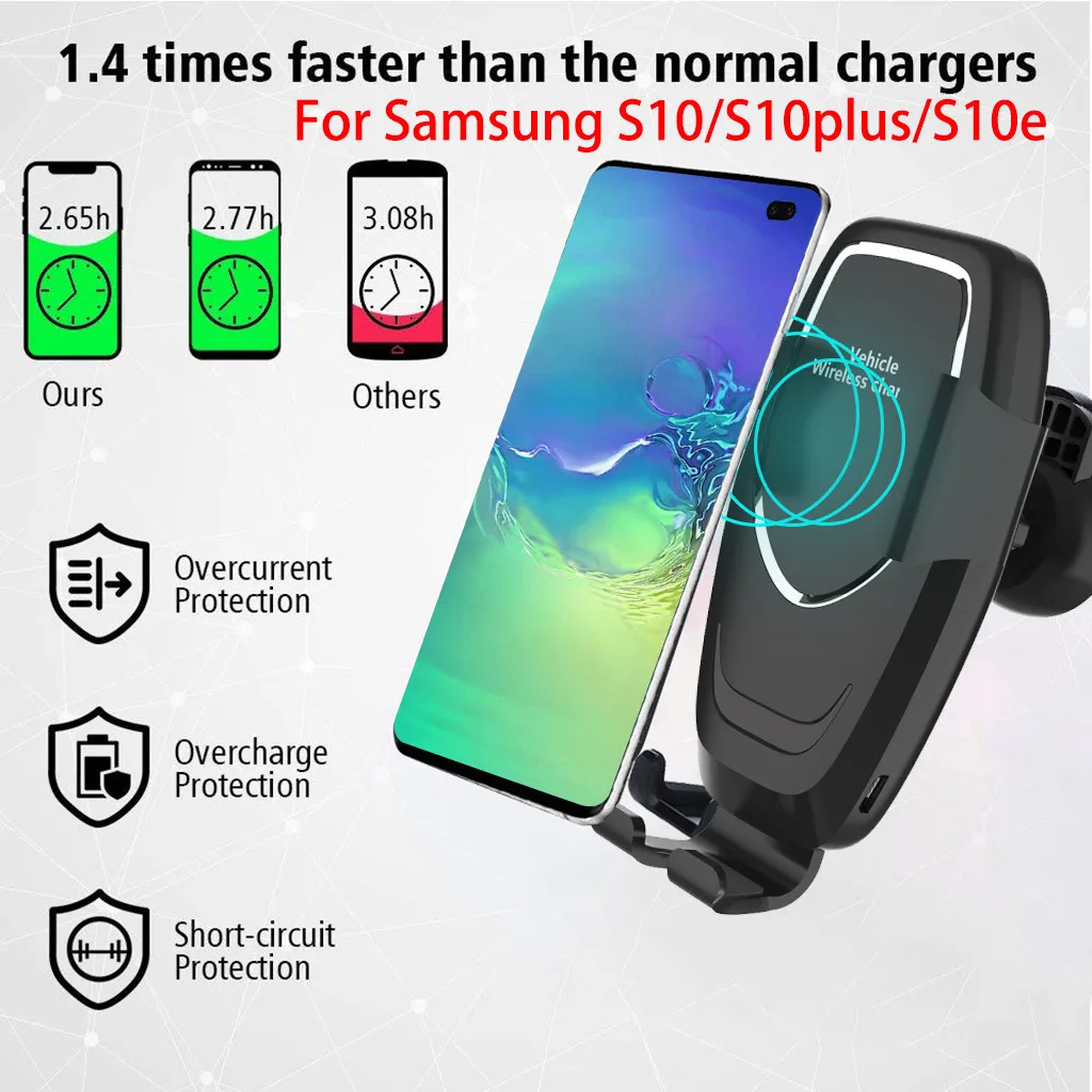 Беспроводное Автомобильное зарядное устройство Qi быстрая Беспроводная зарядка автомобильное крепление гравитационная связь держатель телефона на вентиляции для samsung Galaxy S10 +